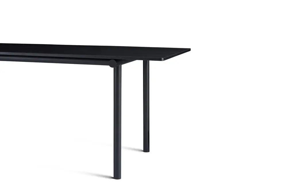 Clear, no-nonsense lines and a sturdy steel frame. Faye Toogood has an eye for removing clutter, and her sculpted designs celebrate the rural past even as they partake of the urban contemporary and look towards the future. You can see this trademark fusion of traditional and contemporary in the way the sheer lines of the table top (18 mm thin, of Oregon pine, Black or Navy Blue stained ash) seem to float above the subtly rounded black steel or raw aluminum frames. The Tubby Tube table, builds on the motifs of the same designer’s iconic Spade chair, with tubular legs that evoke the down-to-earth strength and practicality of garden implements. The table frame has adjustable feet, to even out crooked floors.Additional information:Materials: Black powder coated steelAvailable Colors: Oregon pine, navy blue, blackAvailable in other sizes: Small, large and extra largeDimensions: W. 200 x D. 90 x H. 72 cm.