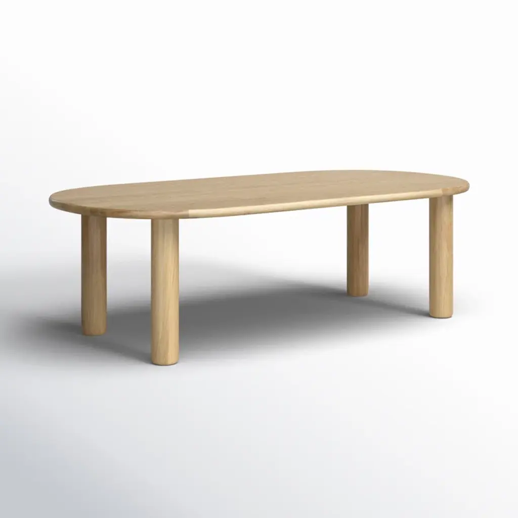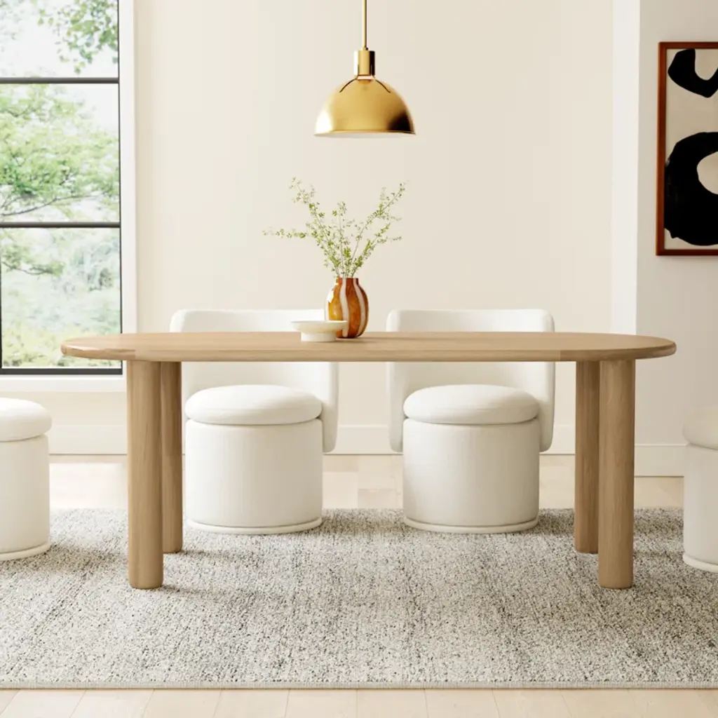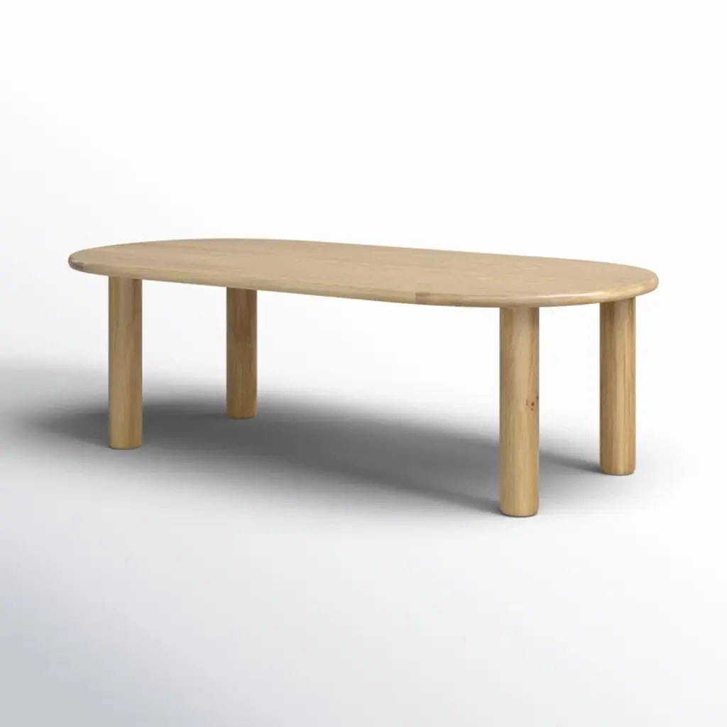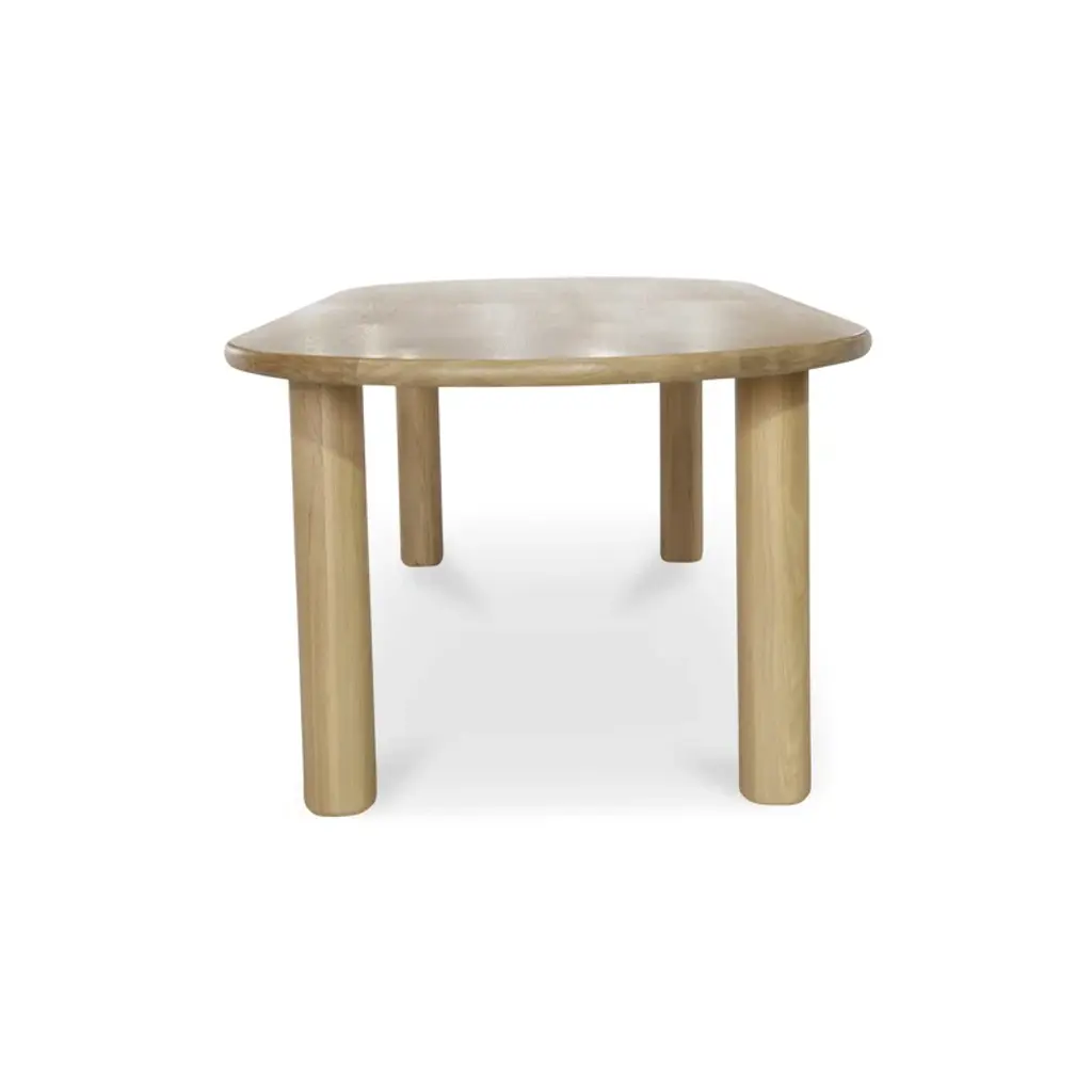 With its thick, rounded edge and sleek column legs, the Tully dining table adds a touch of warmth, comfort, and sustainable design. Featuring a light oak finish, this table brings a sense of visual lightness and effortlessly complements various wood tones. Crafted from FSC-certified oak wood and veneer, the Tully showcases exquisite craftsmanship and ensures responsible sourcing from environmentally managed forests.