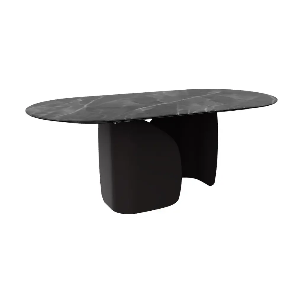 Elevate your dining experience with the Twins Oval Dining Table from Calligaris. Its striking design, featuring two curved metal elements, adds a touch of visual appeal to any space. Suitable for a classic or modern aesthetic, the ceramic top adds a hint of luxury to your everyday routine. Ready to seat up to eight, this dining table is ideal for spacious and well-appointed dining rooms. Highlights