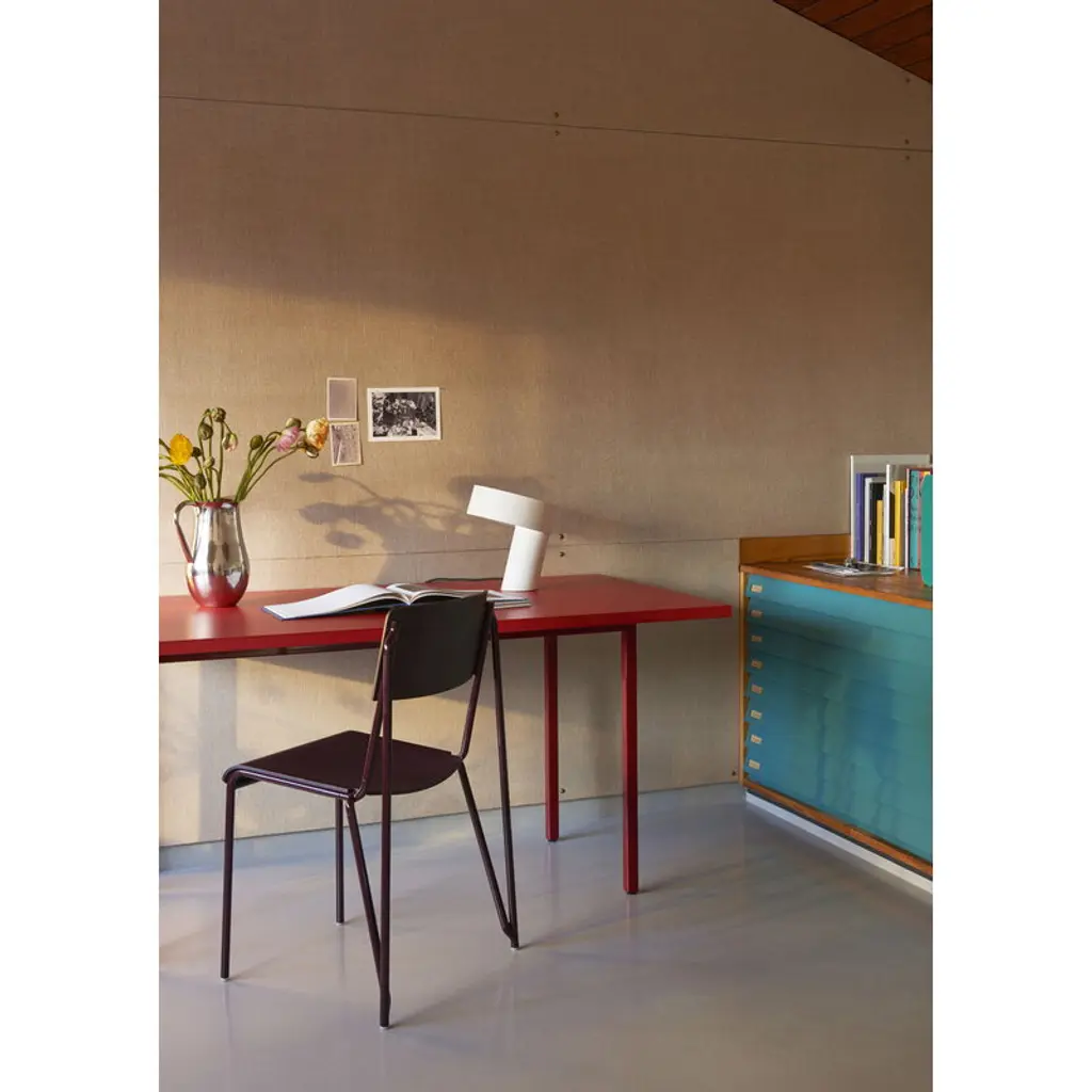 The Two-Color table by HAY is a jovial mix of bursting colors and strict minimalism. Created by Belgian design duo Muller Van Severen, the Two-Color tables feature a unique marriage between two very different components: a sturdy, yet airy steel base and a tabletop crafted from a new SFC certified MDF material, Valchromat. The unique, textured look of the Valchromat is slightly visible through the sheer lacquer, giving the geometric table an organic touch. The no-nonsense silhouette combined with a cheerful palette of colors creates a stunning contrast, adding a touch of understated glee to its surroundings. The sassy yet classy Two-Color table is equally perfect as a dining table or as a conference table at an office.