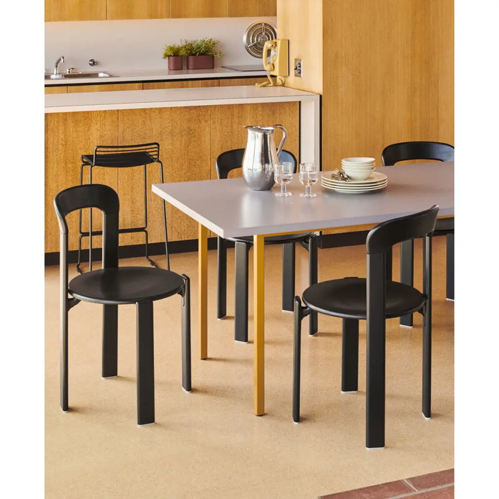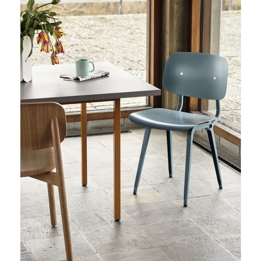 The Two-Color table by HAY is a jovial mix of bursting colors and strict minimalism. Created by Belgian design duo Muller Van Severen, the Two-Color tables feature a unique marriage between two very different components: a sturdy, yet airy steel base and a tabletop crafted from a new SFC certified MDF material, Valchromat. The unique, textured look of the Valchromat is slightly visible through the sheer lacquer, giving the geometric table an organic touch. The no-nonsense silhouette combined with a cheerful palette of colors creates a stunning contrast, adding a touch of understated glee to its surroundings. The sassy yet classy Two-Color table is equally perfect as a dining table or as a conference table at an office.