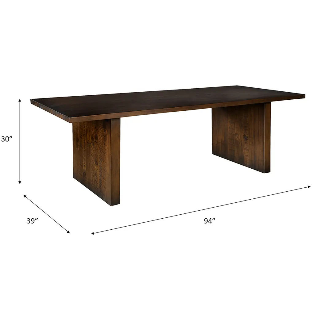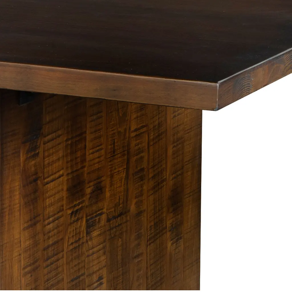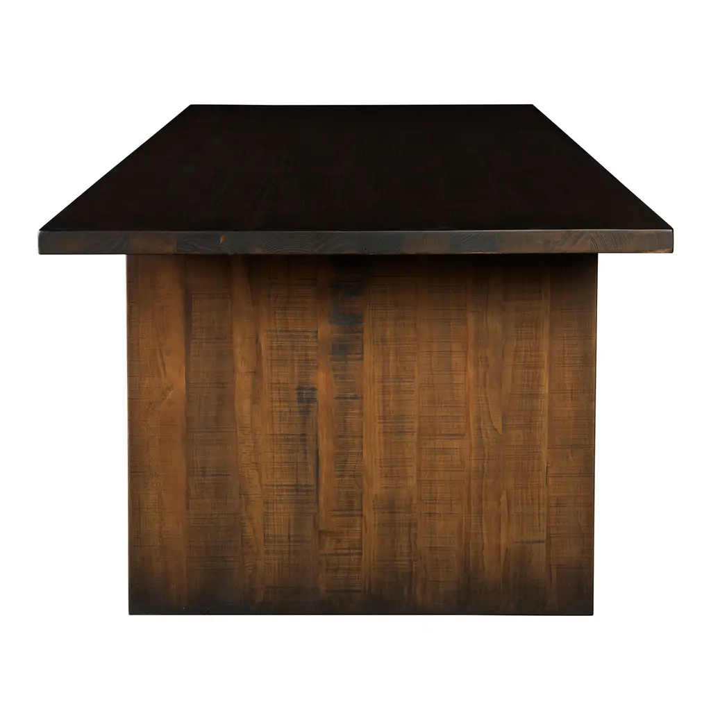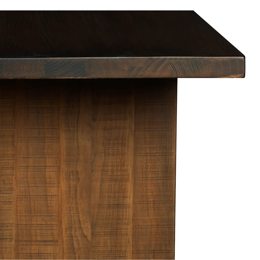 Made of solid pine wood in your choice of finishes, the Tyne dining table makes a simple, sophisticated statement. This substantial table features a rectangular surface set atop two wide, angled legs to minimize visual clutter while matching traditional, modern and rustic homes alike. A one-of-a-kind work of natural art with unique variations in color and grain pattern, its reclaimed-wood construction guarantees that no two pieces are alike.