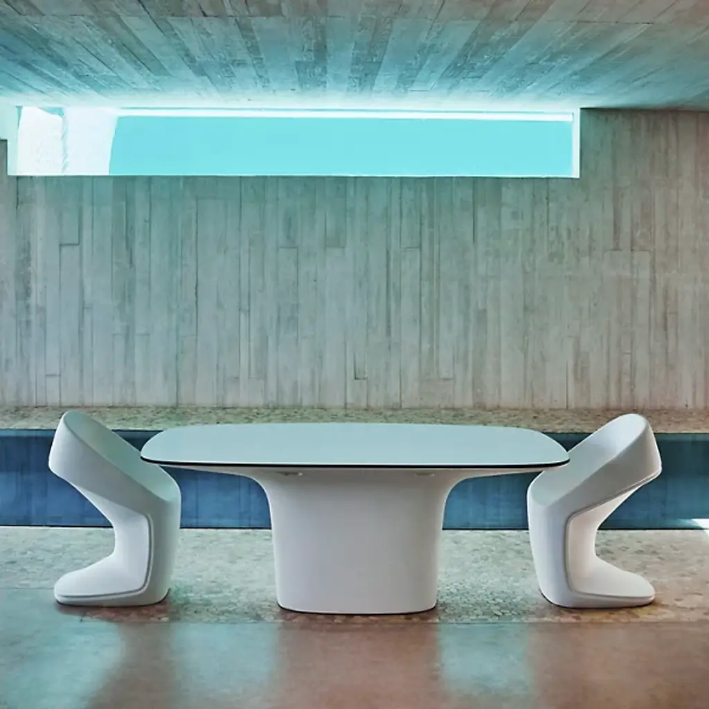 The Ufo Outdoor Dining Table by Vondom is a cool creation from multidisciplinary designer Ora Ïto. Ready to make a statement wherever it is placed, this fluid and sculptural table is made from polyethylene resin using a rotational molding process to produce a piece that works both indoors and out. Inspired by the shapes of pagodas and UFOs, the experimental silhouette of this fun and functional design allows you to add a spot to elevate décor, drinks, and more to any space.