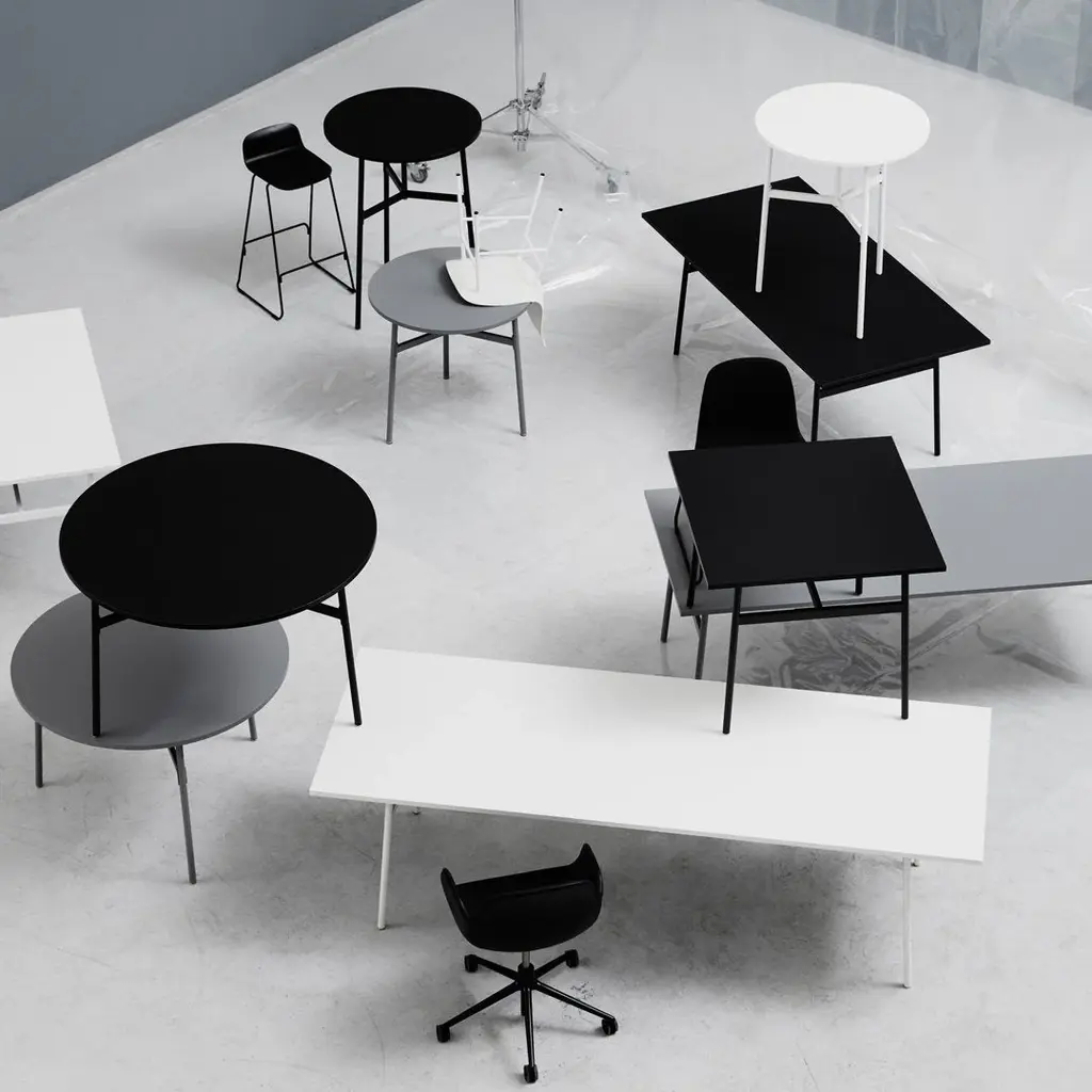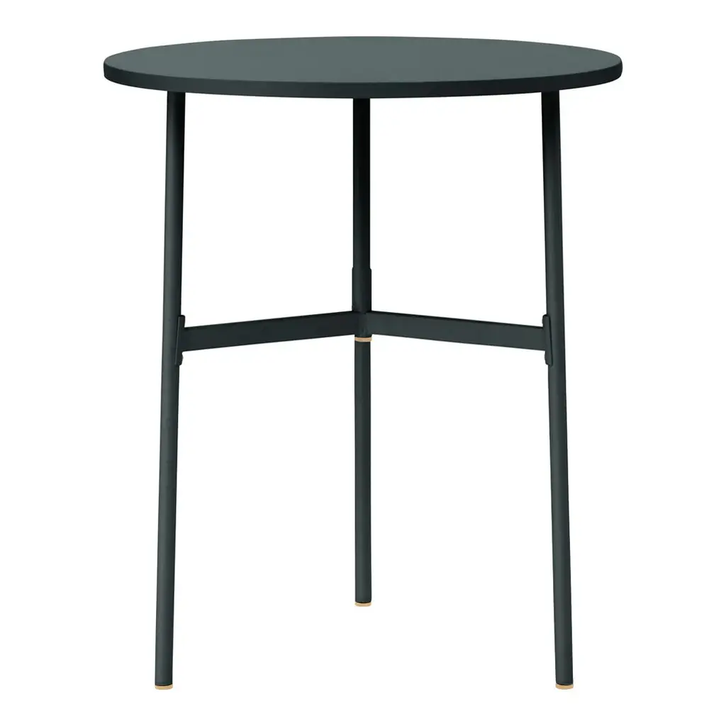 A place for meals, work, studying, conversations and relaxation; a table is a base and gathering place for all sorts of activity, and the Union collection accommodates them all. An all-round collection of tables in a minimalist design, which gets an elegant lift from shiny brass feet. Union is a timeless table collection that can assume many forms of expression according to the interior that the tables are placed in. The Table Top and legs are kept in one cohesive color, only broken by the subtle brass details. The Table Top is made from premium anti-scratch, anti-fingerprint laminate and finished with ABS edging, while an airy steel design makes up the base. As a fine detail, the base is screwed together using over-sized brass screws. The series presents both round and rectangular models with varying heights and sizes. With everything from dining tables to tall cafe tables, the collection offers a broad range of furnishing options for both private and public spaces.
