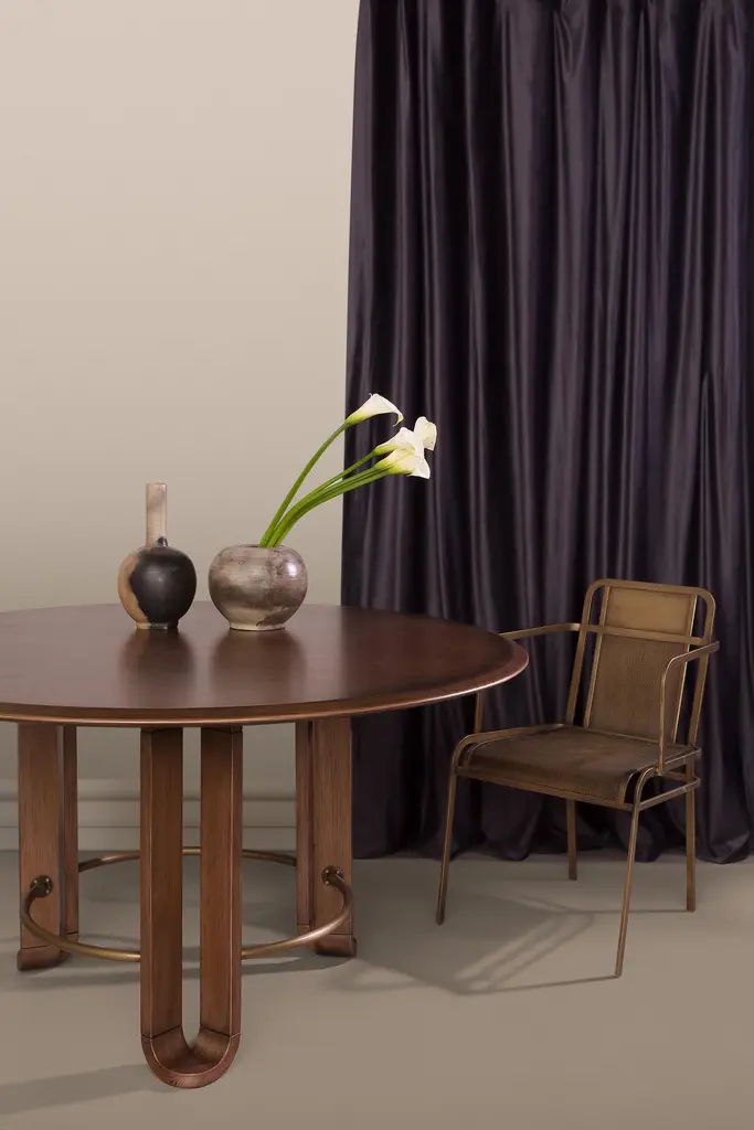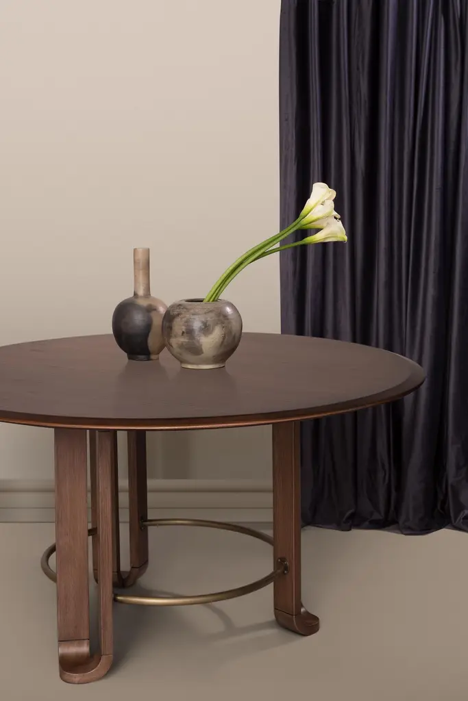Unique round Yaprak dining table by Ekin VaronDimensions: D 140 x 75 HMaterials: Walnut, maple, oakCustom materials, sizing and finishes available as item is made to order.Ekin Varon is the founder and creative director of Ekin Varon Design Studio. Born and raised in Istanbul, Ekin has worked in various architecture firms and furniture design studios after completing her academic education in the furniture department of Rhodes Island School of Design. Having a sculptor mother and a father who is in the textile business, Ekin grew up having appreciation of various artistic disciplines and a desire of creative expression. In 2020, former co-founder of 15 West Studio, founded Ekin Varon Design Studio. Interdisciplinary art is at the center of Ekin’s design approach. Using various craftsmanship techniquesat at her designs, she creates multi layered, unique furniture, objects and environments. Originality is the main driver of her designs and she achieves that by creating timeless designs that harmonize modern aesthetics with traditional Turkish craftmanship.