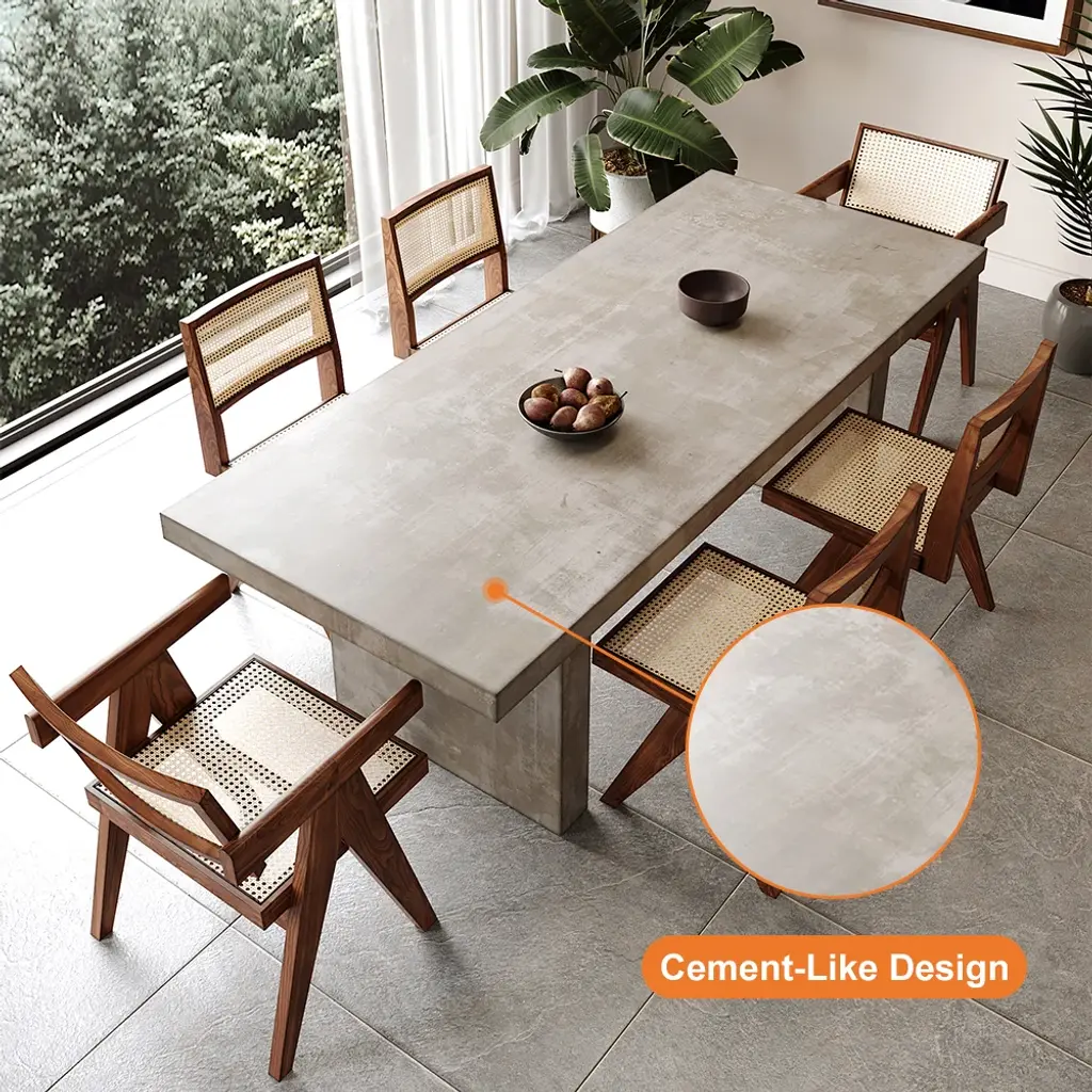 The Upoak 70.9" Farmhouse dining table combines rustic charm with modern simplicity. Crafted from solid wood with a beautiful gray finish, its dual pedestal base ensures stability while comfortably seating 6 - perfect for family gatherings and dinner parties.