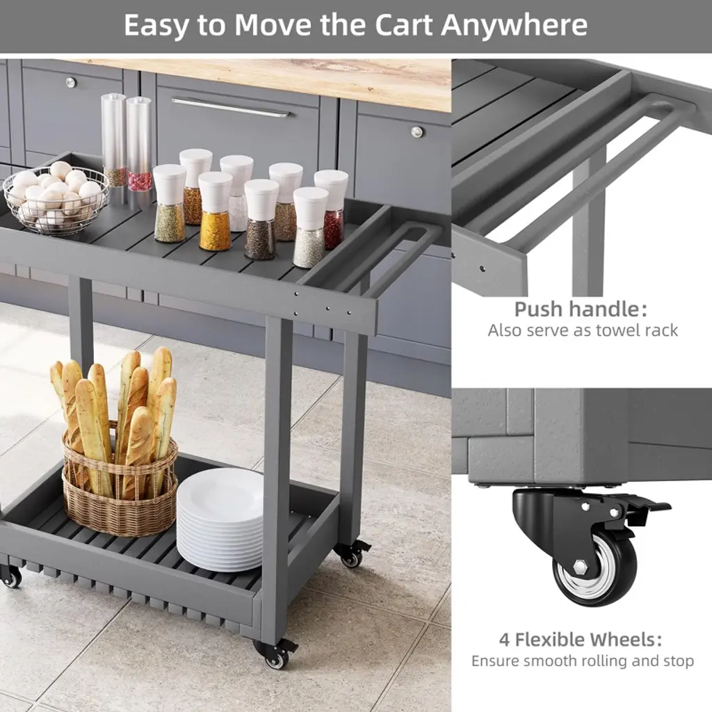 Utility Service Cart, 2-shelf Outdoor Prep Cart Dining Table With Wheels And Lipped