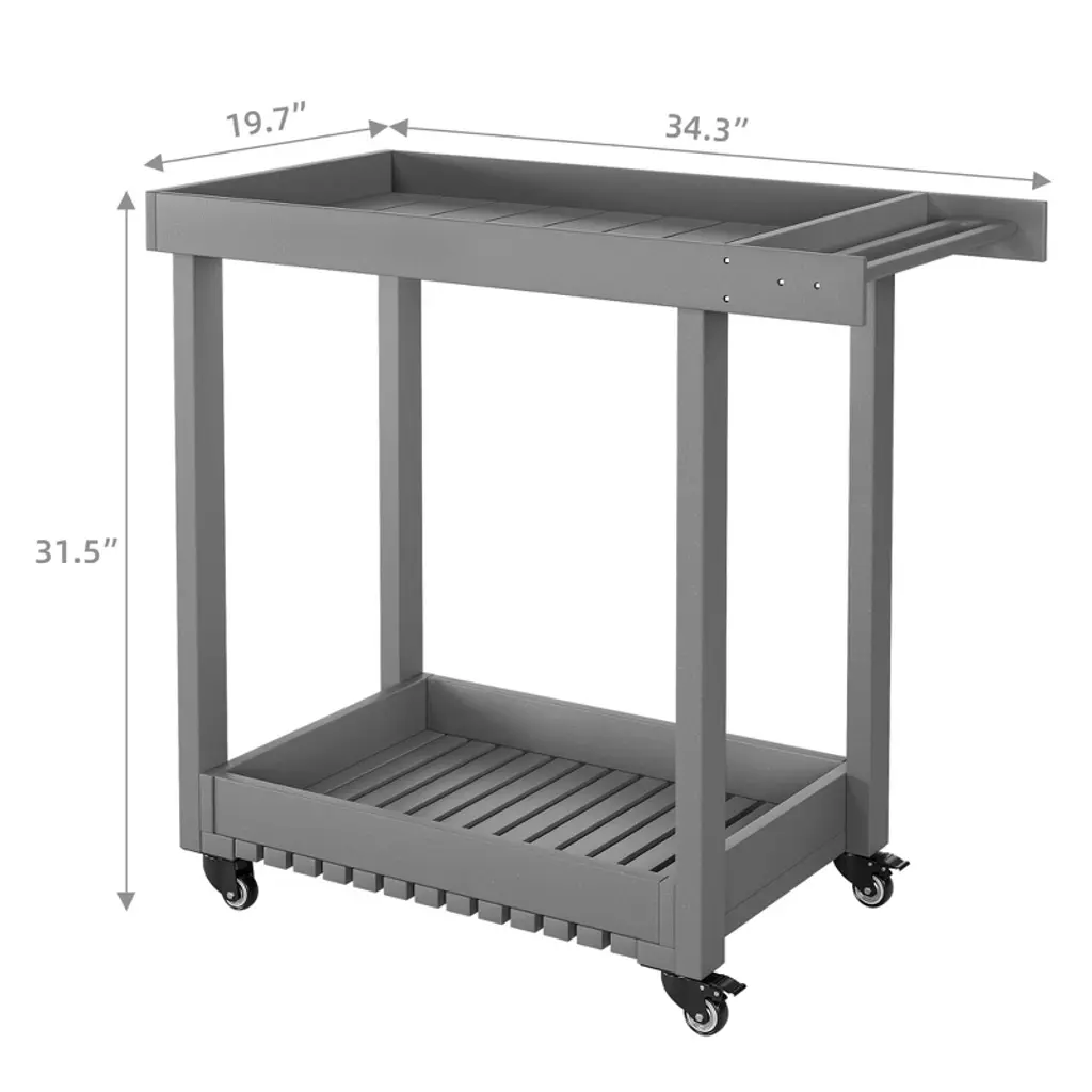 Heavy-Duty HDPE Utility Cart - Tiered Shelves with Locking WheelsWhether you’re organizing home supplies, transporting office documents, moving warehouse tools, or streamlining factory tasks, this HDPE utility cart blends uncompromising durability, versatile storage, and smooth mobility. Its lightweight yet heavy-duty design eliminates the trade-off between strength and maneuverability, making it a reliable solution for both daily household use and demanding industrial environments.1. Durable & Lightweight HDPE Construction: Built to Last, Easy to MoveCrafted from high-density polyethylene (HDPE)—a premium material renowned for its toughness—this cart resists the wear and tear that breaks down cheaper carts:Rust & corrosion-proof: Unlike metal carts that rust in humid garages or warehouses, HDPE holds up to moisture, making it safe for damp spaces (e.g., basements, laundry rooms, or factory wash zones).Dent, chip, & peel-resistant: Accidental bumps from tools, boxes, or equipment won’t leave permanent damage—critical for busy warehouses or cluttered home garages.Lightweight strength: Despite its heavy-duty performance, HDPE keeps the cart light enough to maneuver alone (no need for extra help to move it between rooms or workstations).This construction ensures the cart maintains its shape and functionality for years, even in high-traffic, high-impact settings.2. Versatile Multi-Scene Application: One Cart for Every TaskDesigned to adapt to almost any environment, this cart eliminates the need for multiple specialized trolleys. It shines in:Homes: Use as a mobile pantry (store canned goods, snacks), a cleaning cart (hold mops, sprays, and towels), or a craft station (organize fabrics, paints, and tools).Offices: Transport binders, printers, or breakroom supplies between desks; use as extra storage for office essentials (staplers, paper, toner).Warehouses/factories: Move small tools, parts, or documents across floors—resists damage from oil, grease, or industrial cleaners.Retail/shops: Stock shelves, transport merchandise, or hold display items—its neutral grey color fits seamlessly in any store aesthetic.Its ability to transition between roles makes it a cost-effective, space-saving tool for both personal and professional use.3. Enhanced Mobility with Locking Caster System: Stable & Smooth EverywhereNavigating tight corners, slopes, or busy spaces is effortless—thanks to a mobility system designed for control:4 x 360° swivel casters: Glide smoothly across almost any surface (wood, tile, concrete, carpet) without scratching floors or squeaking. The full rotation lets you maneuver around obstacles (e.g., office desks, warehouse racks, or home furniture) with precision.2 locking brakes: When you need to stop—whether loading supplies, working next to the cart, or parking on a slight slope—the locking wheels secure it firmly. No accidental rolling, even on uneven garage floors or warehouse ramps.This balance of mobility and stability ensures the cart stays where you need it, when you need it—critical for safety and efficiency.4. Spacious Tiered Shelf Design: Ample Storage, No ShakingWith overall dimensions of 34.3"D x 19.7"W x 31.5"H and a practical tiered layout, the cart offers generous storage without sacrificing stability:Ample space: The tiered shelves provide room for tools, boxes, documents, or household supplies—no more stacking items precariously (which leads to spills or damage).Sturdy, shake-free design: Reinforced shelf supports prevent wobbling or tilting, even when loaded with heavy items (e.g., full toolboxes, stacks of books, or bulk office paper).Open shelving: Easily see and access stored items—no digging through closed cabinets to find what you need.This design keeps your essentials organized and accessible, cutting down on time wasted searching for tools or supplies.5. Quick Tool-Free Assembly: Ready to Use in MinutesYou won’t spend hours deciphering complicated instructions or hunting for missing parts. The cart features:Tool-free setup: No drills, screwdrivers, or specialized tools required—all components snap or lock into place.Detailed instructions: Clear, step-by-step guides (with illustrations) make assembly straightforward, even for first-time users.Fast assembly time: Most people can put the cart together in minutes, not hours—unbox it, assemble it, and start using it the same day.