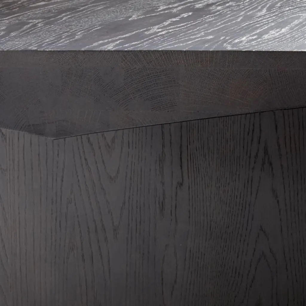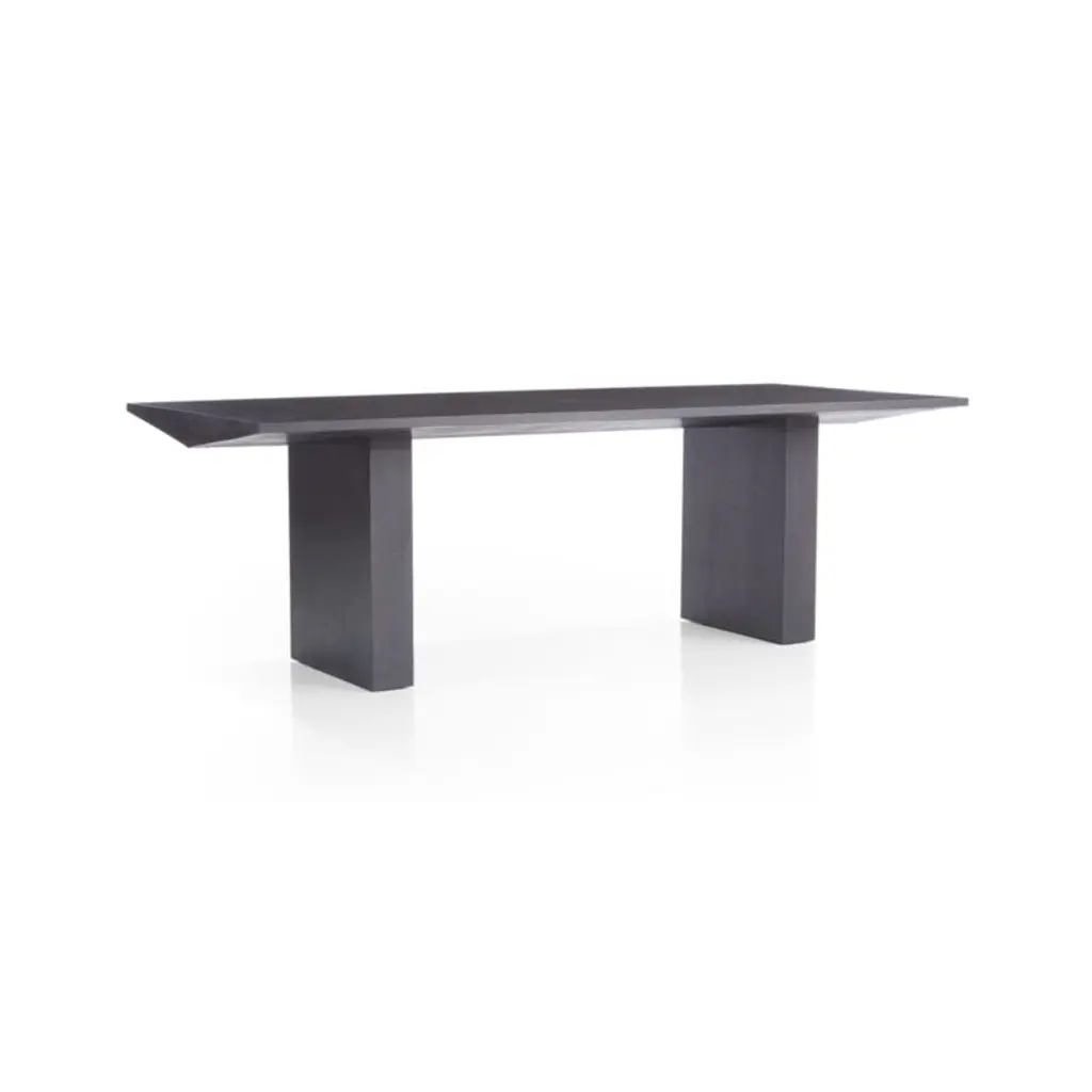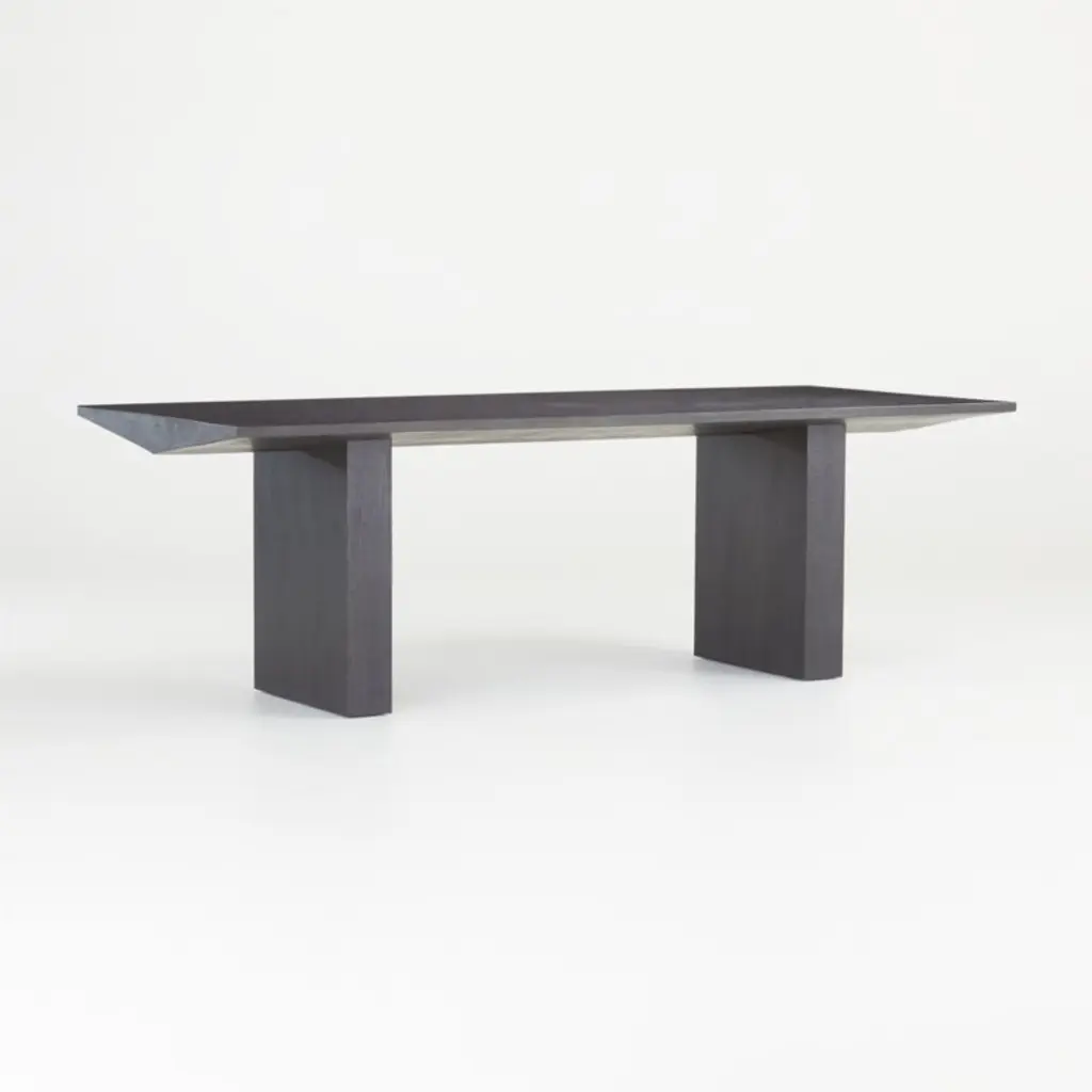 Certified sustainable by the Forest Stewardship Council, solid European white oak and oak veneer make a sculptural statement in our boldly designed Van dining table. Tinted a chic shade of charcoal, the commanding table achieves the perfect balance between arresting shapes and intricate wood grain. We love the way the table invests dining areas with organic richness and striking architectural style. The Van Charcoal Wood Dining Table is a Crate & Barrel exclusive.Part of the Leanne Ford furniture collection, exclusive to Crate and Barrel. A rising design star with a motto we can get behind"paint white, wear black"Ford created pieces that capture her cool, artful vibe.