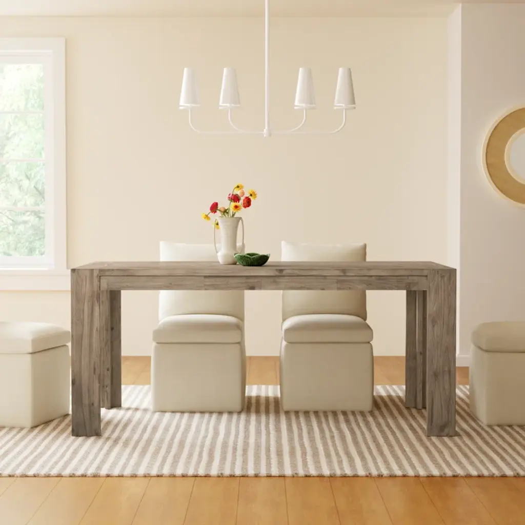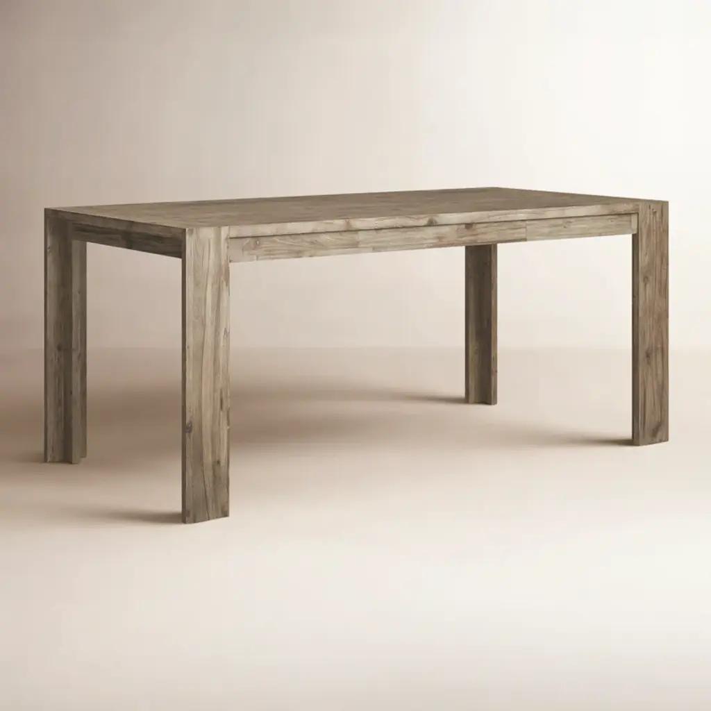Are you looking to create an on-trend cottage dining ensemble, but don't know where to start? The Vancamp dining table is a great option for settling down to a family meal. The beauty of acacia solids is highlighted by the sandblasted antique natural finish. The clean-lined silhouette features a fixed tabletop and distinctive leg. Those design elements are carried over to the bench and sold separately.