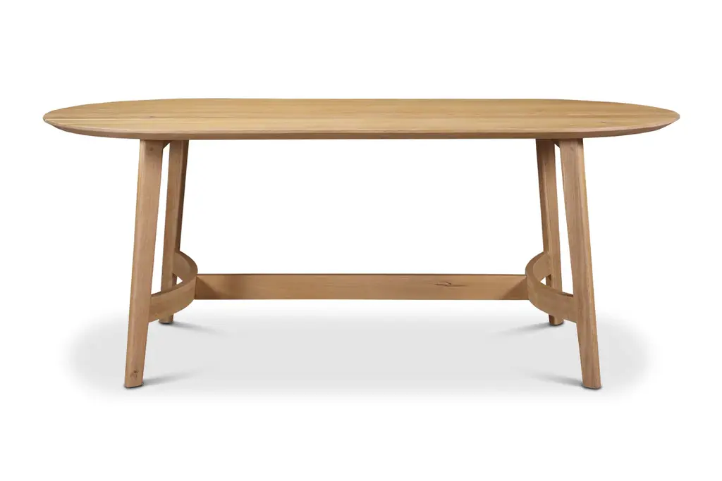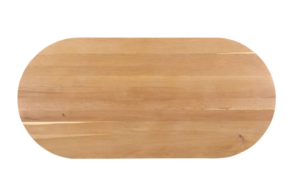 There is no shortage of charm in the Vance Small Dining Table. Every detail is thoughtfully added, from its unique racetrack-shaped top to the curved ends to the trestle-style base with a long stretcher. Finished in a deep, versatile brown or natural, it complements most design styles. The table boasts solid oak construction for maximum durability and can comfortably seat up to eight people, making it a perfect choice for those who love to host. The smaller of two sizes available.