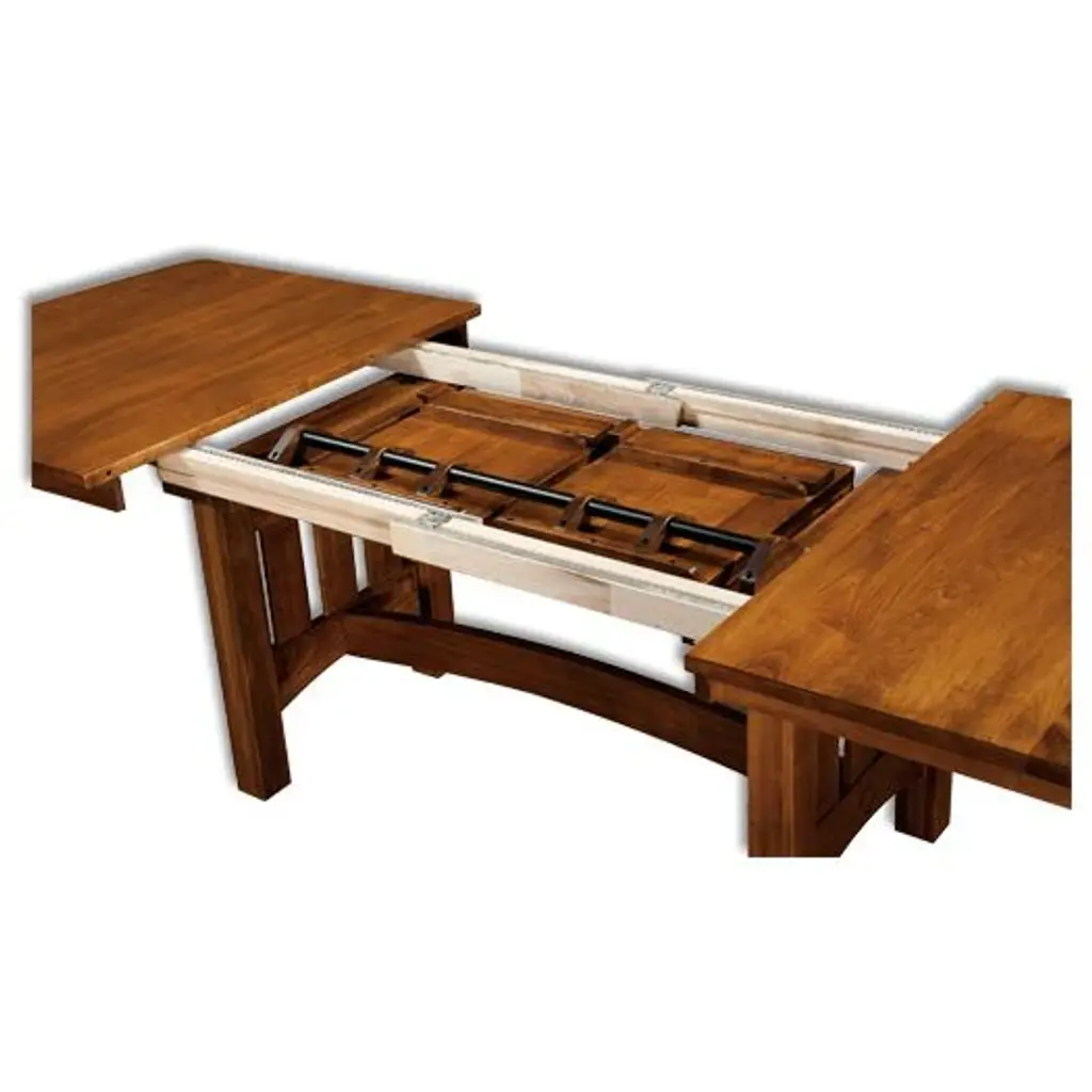 The Amish Vancouver Trestle Table is a contemporary Mission table featuring square trestle posts and an arched spreader bar. 12" Standard leaves are available as well as folding 18" butterfly leaves. Contemporary lines matched with Mission details provide a style that will look stunning in any dining room.