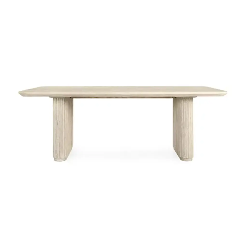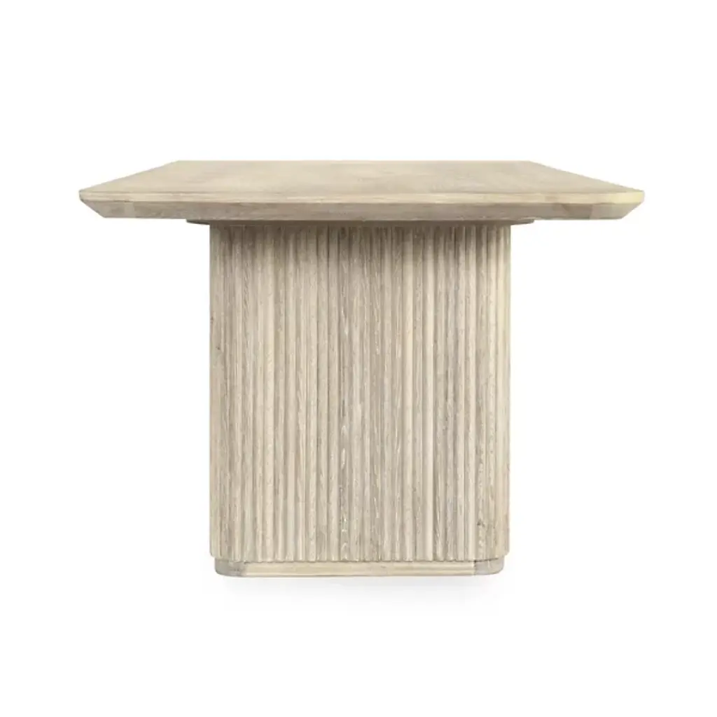 The Vander Dining Table from Classic Home introduces a distinctive reverse chamfer edge that creates visual intrigue through its beveled appearance. Oak veneer construction delivers everyday durability with resistance to normal wear and tear. Wood paneling wraps the base, creating clean lines that complement various interior styles. The hand-applied water-based finish with a semi-gloss texture highlights the natural grain patterns unique to oak. Comfortably seating six people, this table serves as a natural gathering point for daily meals, work sessions, or family game nights.