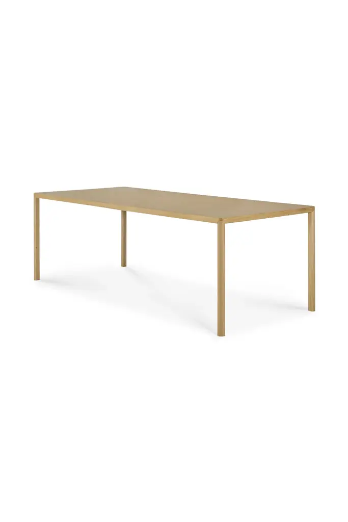 Spruce up your dining area with the refreshing Varnished Oak Scandi Dining Table. This Ethnicraft Air is a strong and lean dining table featuring a simple, clean and minimal design. With its sleek beveled legs, the tabletop seems to float effortlessly above. It's been skillfully crafted from durable oak wood with oiled finish.
