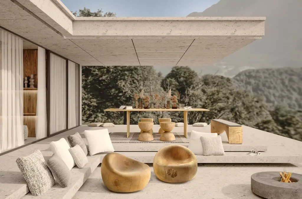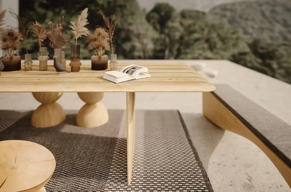 Vela Outdoor Solid Cedar Dining Table, Made In Italy