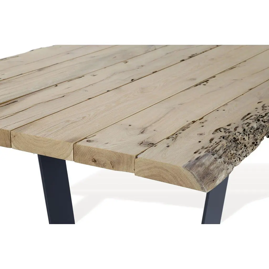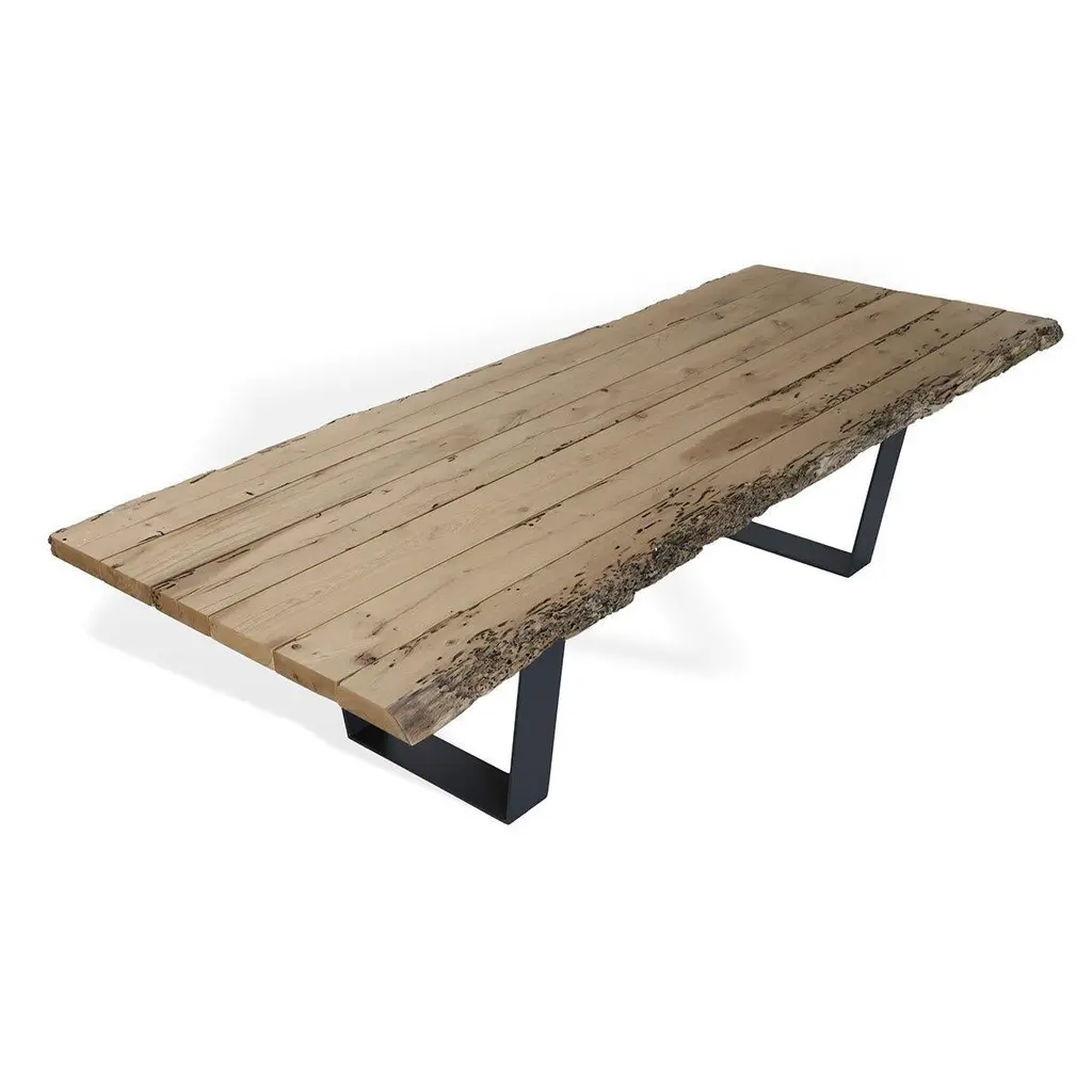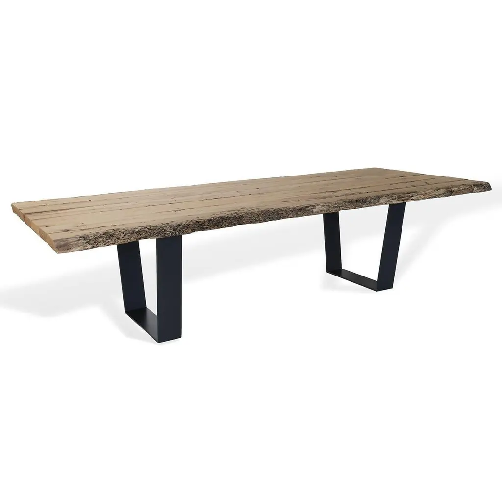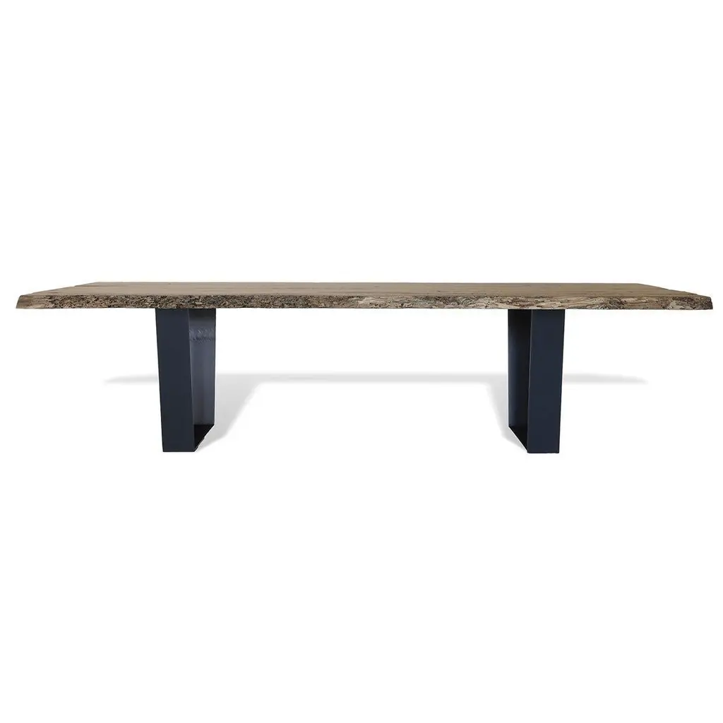 Handcrafted briccola wood dining table salvaged from authentic Venice lagoon poles. This special wood has acquired over time an extraordinary strength and a recognizable spectacular nature. Base in black lacquered iron composed of two legs, U-shape.Materials and finishes:Briccola wood, Iron.Dimensions:Height: 30.32 in. (77 cm)Width: 118.12 in. (300 cm)Depth: 47.25 in. (120 cm)We will be glad to check with the factory’s technical team if sizes, finishes, and colors can be customized. Our pricing includes all costs for international shipping to the U.S., as well as duties and customs clearance fees. Please be aware that local delivery within the U.S. is not included. We offer white glove, front door, and warehouse delivery options. For shipments outside the U.S., kindly reach out to us for a detailed quote.