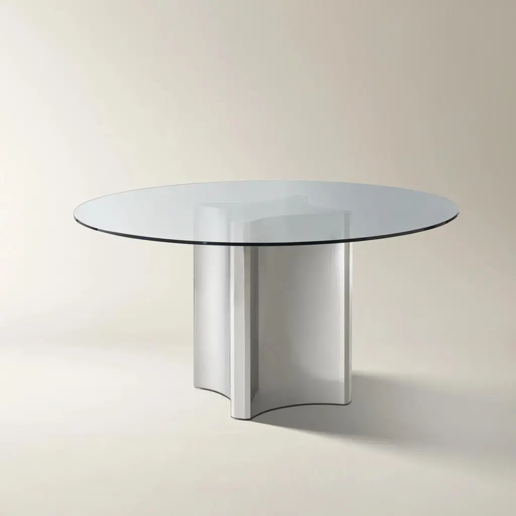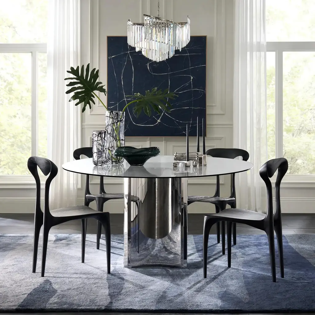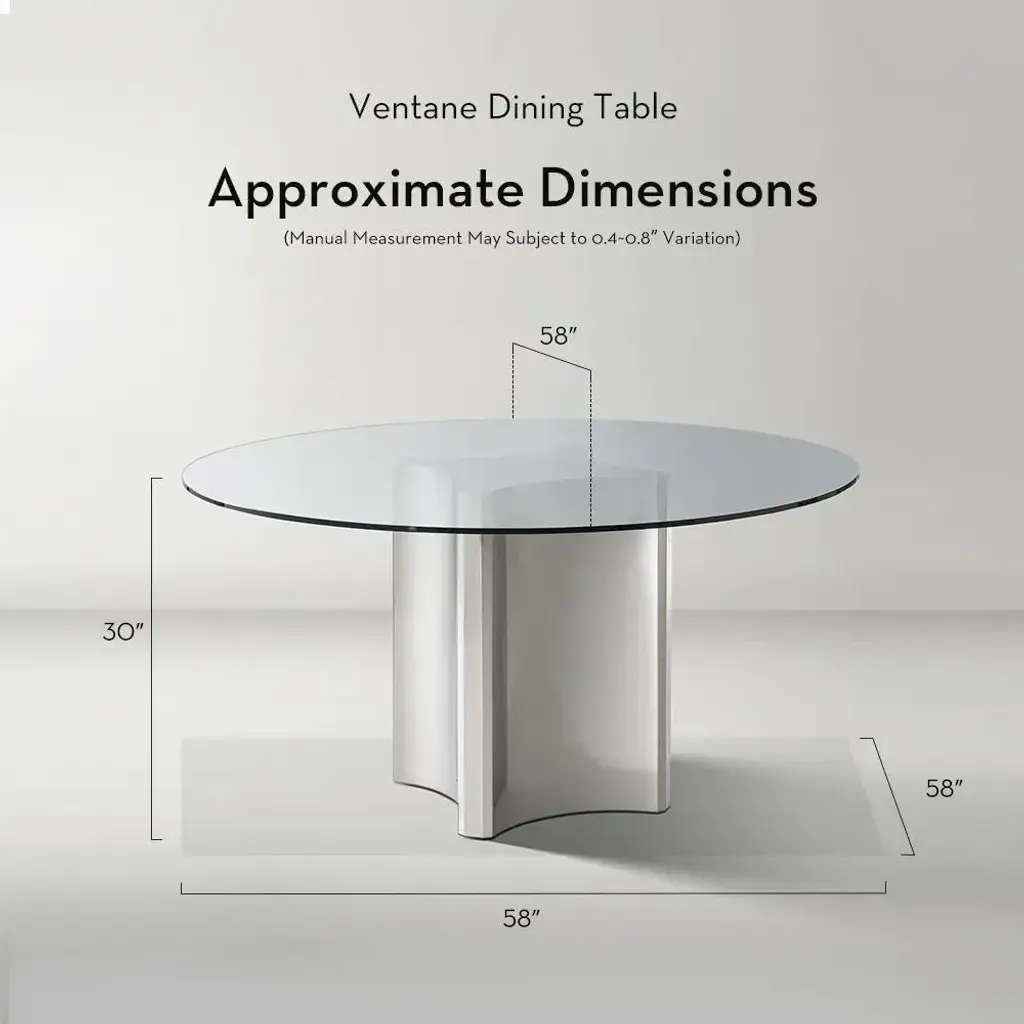Make a bold statement with the Ventane Dining Table in Clear. Designed with a 12mm tempered glass top and a polished stainless steel base, this piece embodies modern sophistication. The interplay of light and reflection adds a sense of airy elegance, while the anti-fingerprint finish ensures effortless maintenance. Perfect for contemporary dining spaces, this table seamlessly marries style and function.