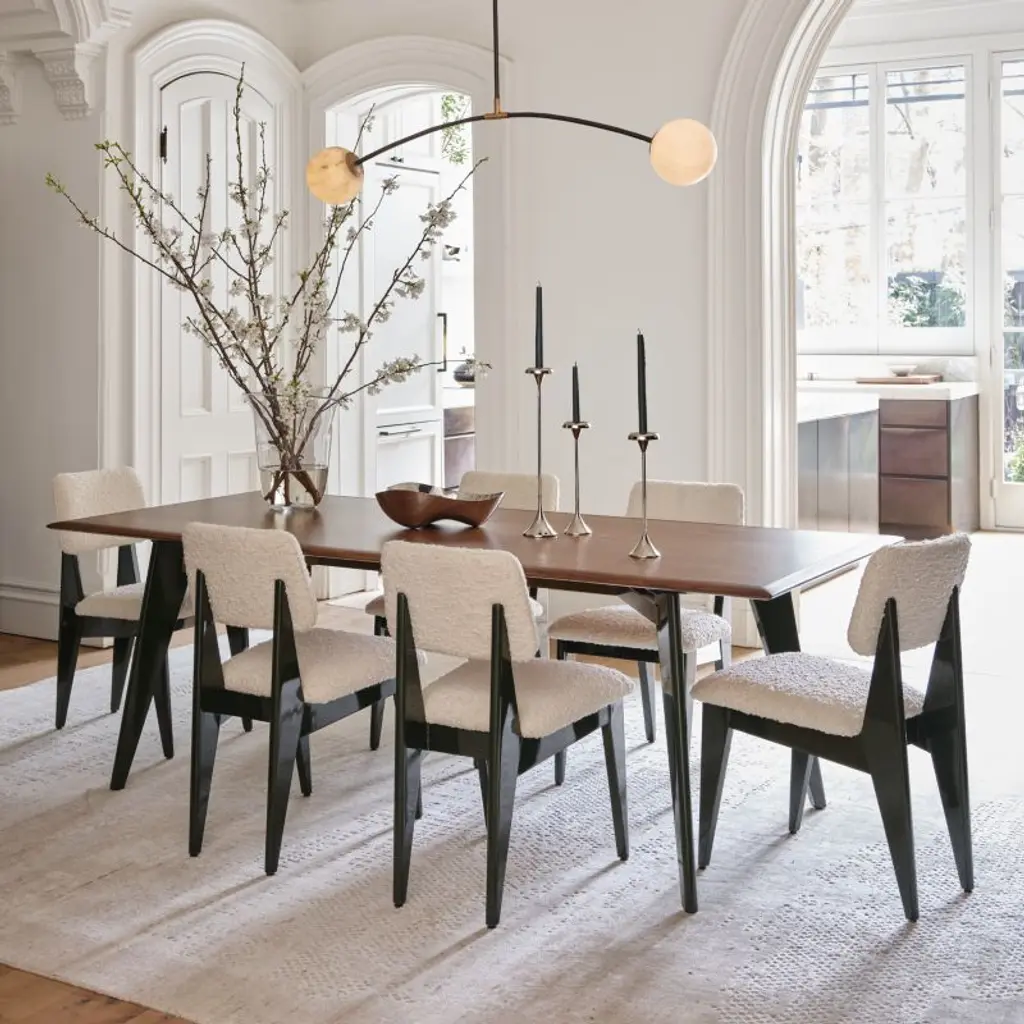 Verbier channels the best of classic French midcentury design. The dining table takes an angled stance on tapered legs with a gently tapered silhouette and an understated-yet-vibrant dark green finish glossed with high-sheen lacquer. Burnished brass stretchers provide support while lending mixed-material panache. A walnut veneer top floats above, detailed with elliptically shaped solid walnut edges. Elegant in form with everyday practicality, the table seats up to eight.Our collaboration with Daniel Humm, chef-owner of Eleven Madison Park and Clemente Bar in New York City, is a celebration of simplicity, beauty and function for the table and beyond.