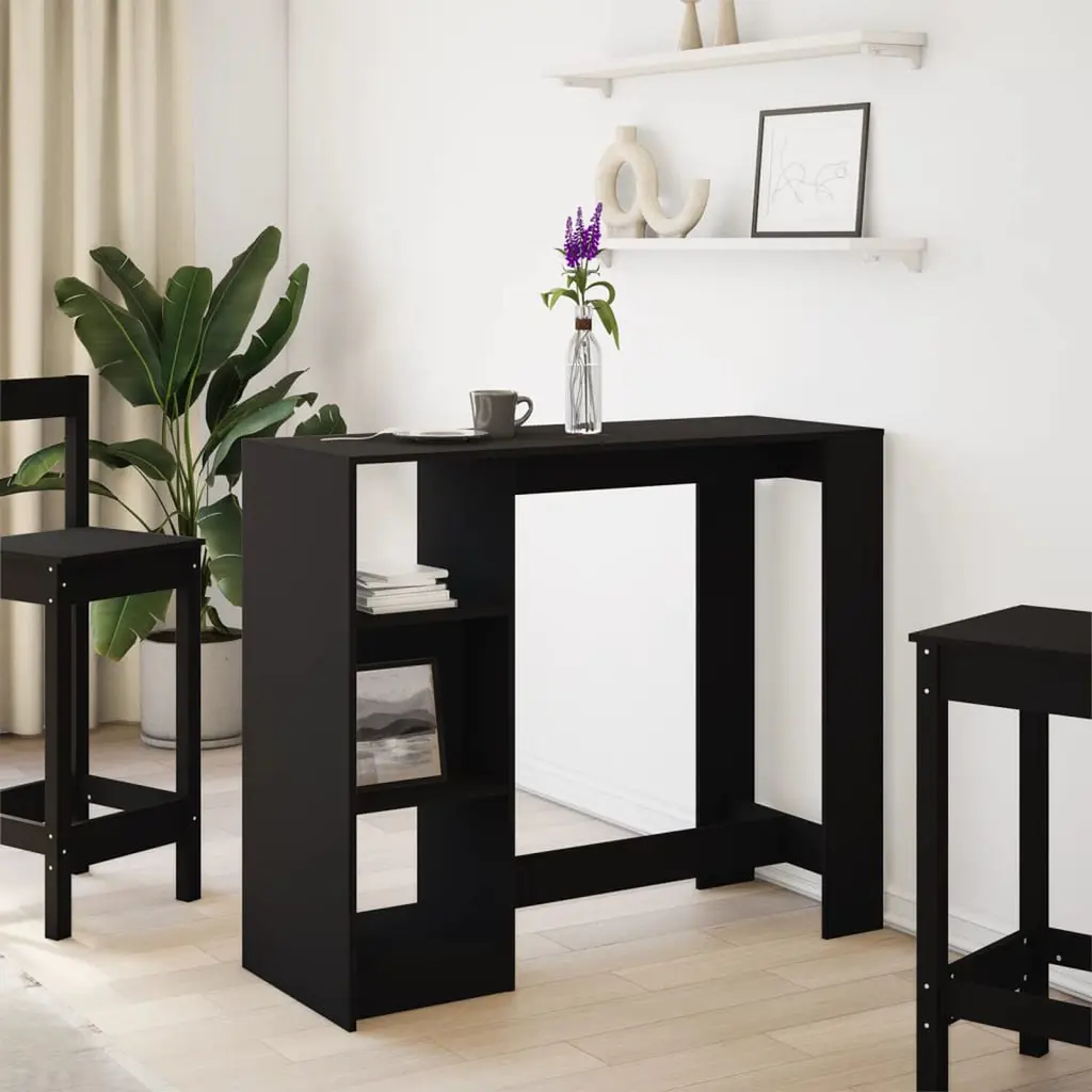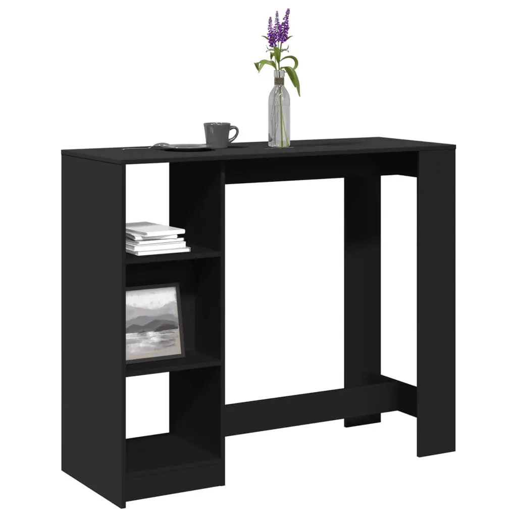 This bar table blends function and modern flair, making it a fab addition to any home, whether it’s a lively kitchen or a posh dining room. Made from durable engineered wood with a sleek black finish, it's both stylish and practical, providing loads of top space for your fave drinks and decorative bits, really lifting the vibe of your place. Ample Storage: The table features built-in shelves that offer ample space for your glassware and drinks. With four spacious shelves, you’ll find it easy to put away everything from cocktail gear to decorative items, keeping your home bar ready for a bash.Contemporary Design: The sleek, modern look of this bar table is showcased by its smooth black finish and rectangular shape. Its simple style lets it fit right into a variety of decor themes, making it a lovely focal point in any room.Robust Construction: Built from quality engineered wood, this bar table ensures durability, supporting up to 176.4 lb. Its strong build guarantees stability, letting you kick back with your drinks worry-free.Multi-Purpose Use: Great for both casual hangouts and classy dinners, this table shines in the dining room, kitchen, or living room. Its versatility is spot on for anyone wanting to enhance their entertaining game.Easy Maintenance: Designed for convenience, the table’s smooth surface can be wiped clean easily, so you can concentrate on having a good time with friends and family.