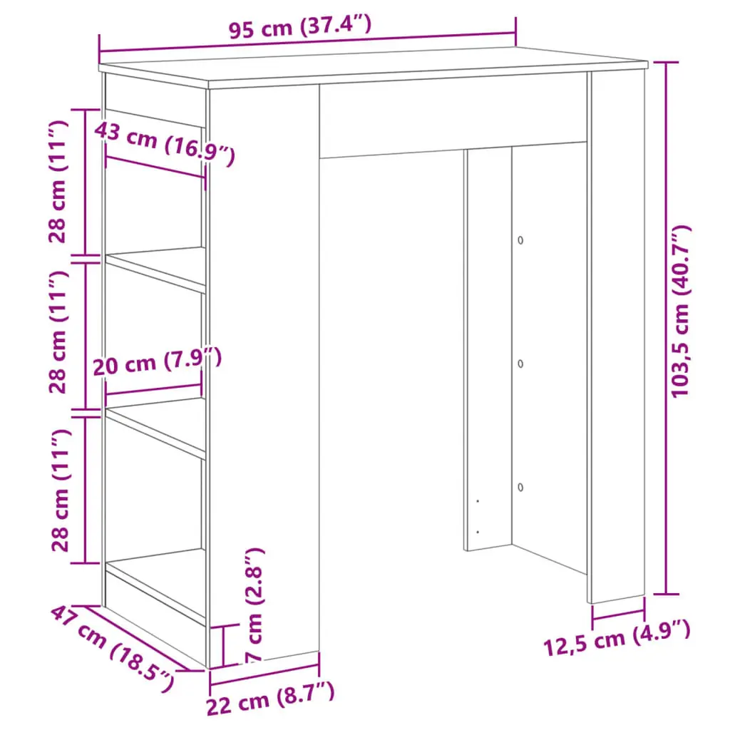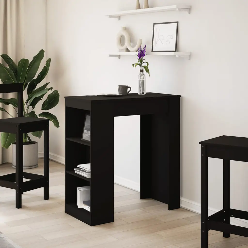 This modern bar table is here to jazz up any kitchen or dining area. With its sleek black finish and 40.7 in height, it’s both chic and practical for dining and entertaining. Whether you’re hosting friends or family, its simple design fits right into any decor, making it a top choice for both casual and formal occasions. Stylish Storage: The bar table's got three handy storage compartments, keeping your essentials close without all the clutter. Perfect for kitchens and dining rooms where you need efficiency.Space Optimisation: Its wall-mounted design ensures you make the most of your floor space, ideal for compact apartments or dining setups. It creates a tidy look while keeping the area open and inviting.Versatile Use: This table isn’t just for cocktails. Use it for casual meals, as a workspace, or to display your favorite decor pieces. Its flexible design invites creative use in any setting.Robust Construction: Made from engineered wood, it looks fantastic and it’s built to last. The smooth surface adds to its charm while the durable materials can handle everyday use.Modern Aesthetic: The sleek matte black finish gives this bar table a touch of elegance that fits perfectly in contemporary interiors, making it a fab addition for modern homes.