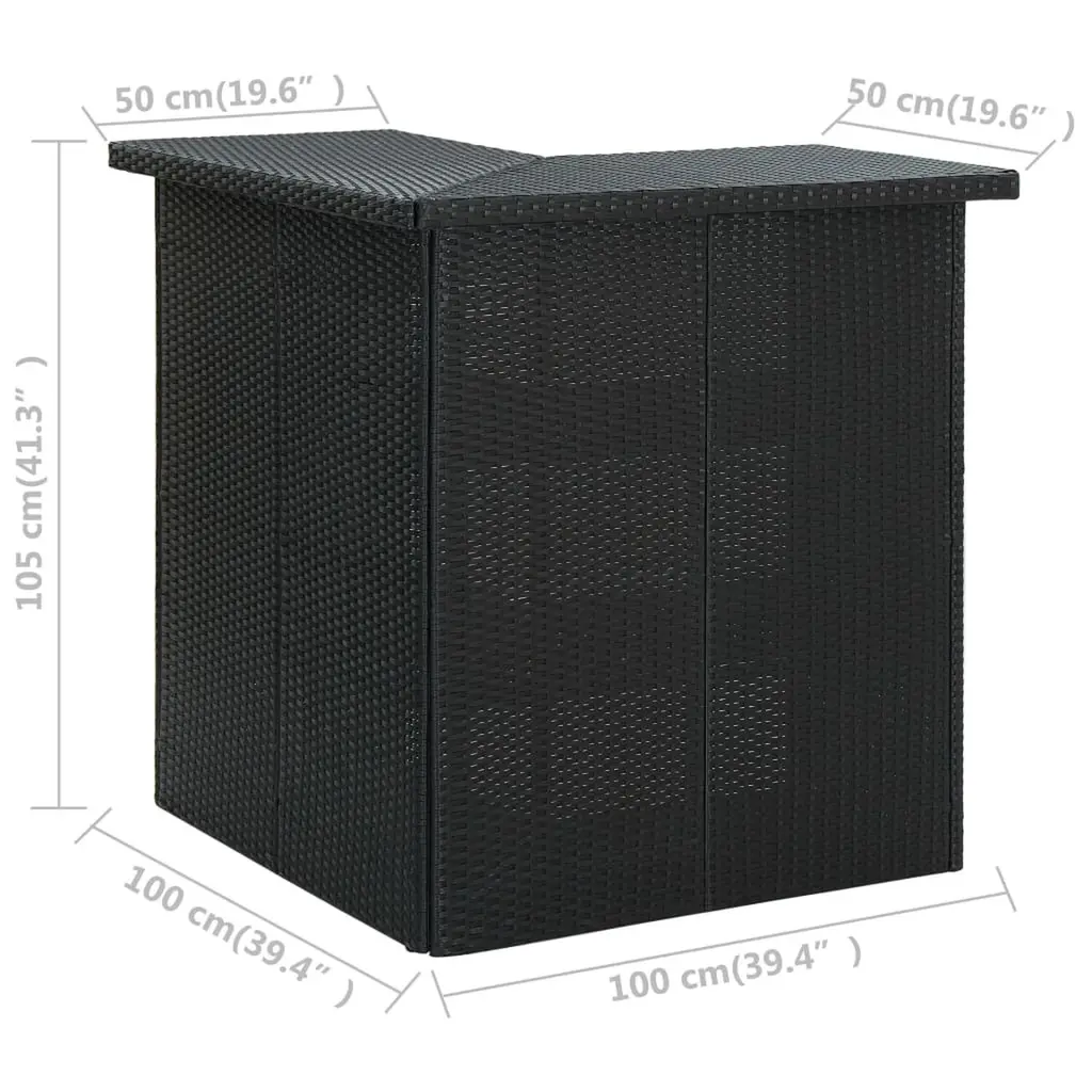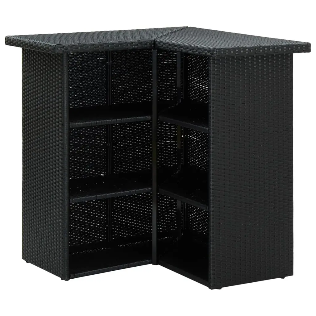 This modular corner bar table is a practical and stylish feature for your dining room or kitchen. Its sleek black rattan design gives a boost to any space, perfect for casual meals or entertaining guests. Ample Storage: Comes with three shelves, keeping essentials close and tidy. Lightweight Build: Easy to shift around as you like. Modern Look: The matte finish and clean lines offer a fresh vibe. Ideal for Indoor/Outdoor Use: Perfect for cozy gatherings inside or sunny brunches outside. Spacious Top: At 39.4 inches by 19.7 inches, there's plenty of room for dining or drinks.