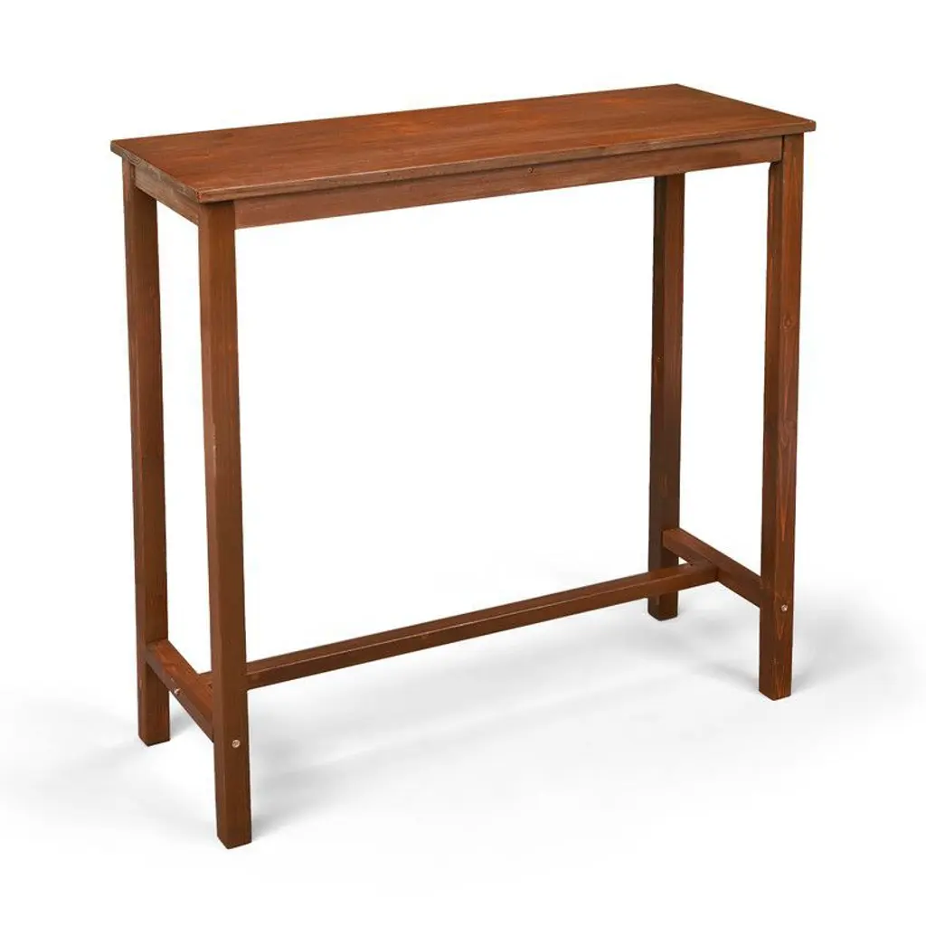 This lovely rustic bar table is made from solid pine wood, blending style and function to enhance any dining or outdoor space. Its striking black finish adds a modern yet classic touch, making it perfect for gatherings or casual dining whether in your kitchen, dining room, or on the patio. Stylish Design: Highlights the rustic beauty of the table, pairing perfectly with various decor styles for any setting.Sturdy Construction: Built from solid pine wood, this table is heavy-duty, holding drinks and meals nicely without wobbling.Versatile Use: Great for parties, casual meals, or outdoor events, fitting up to four people comfortably.Unique Grain Patterns: Every table's wood grain is special, adding character and charm, making sure it's one of a kind.Dimensions: At 39.4 in long, 19.7 in wide, and 43.3 in tall, it works well in both small and spacious spots.
