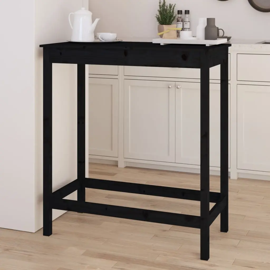 Vidaxl Bar Table Black Solid Pine Wood Medium Durable Bar Table