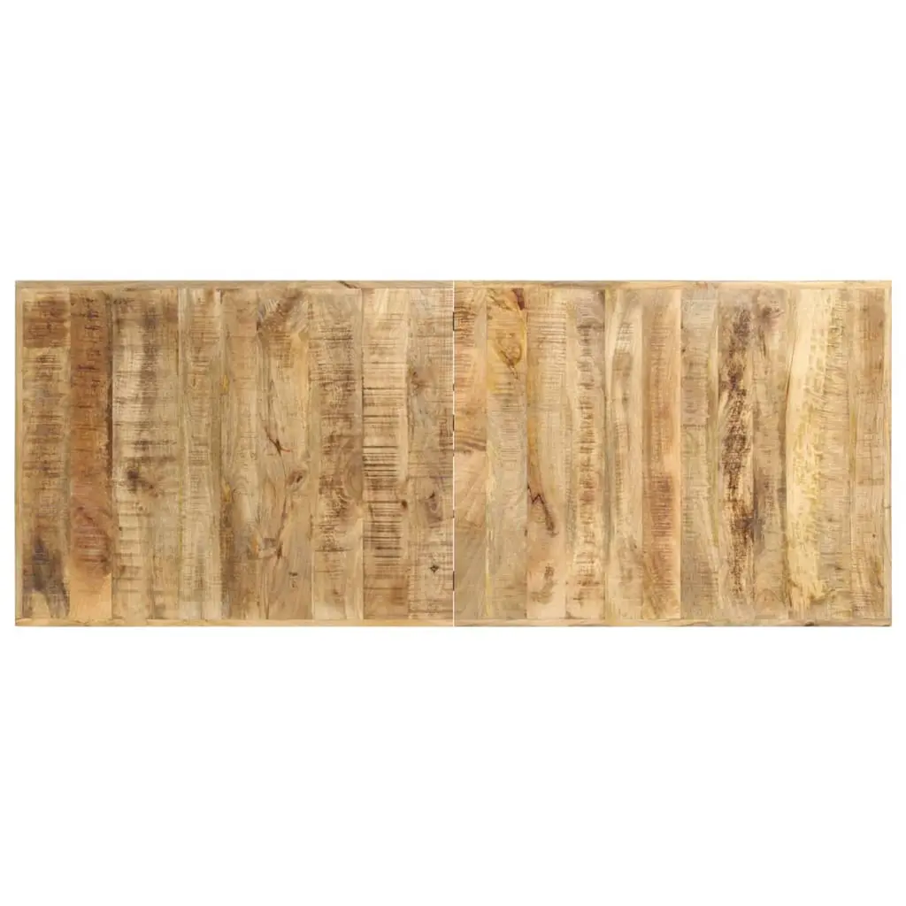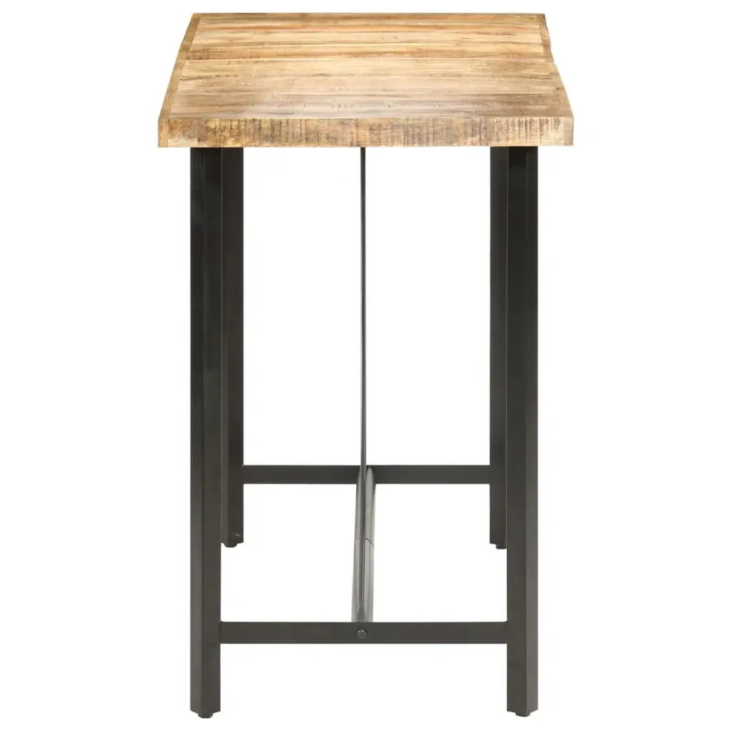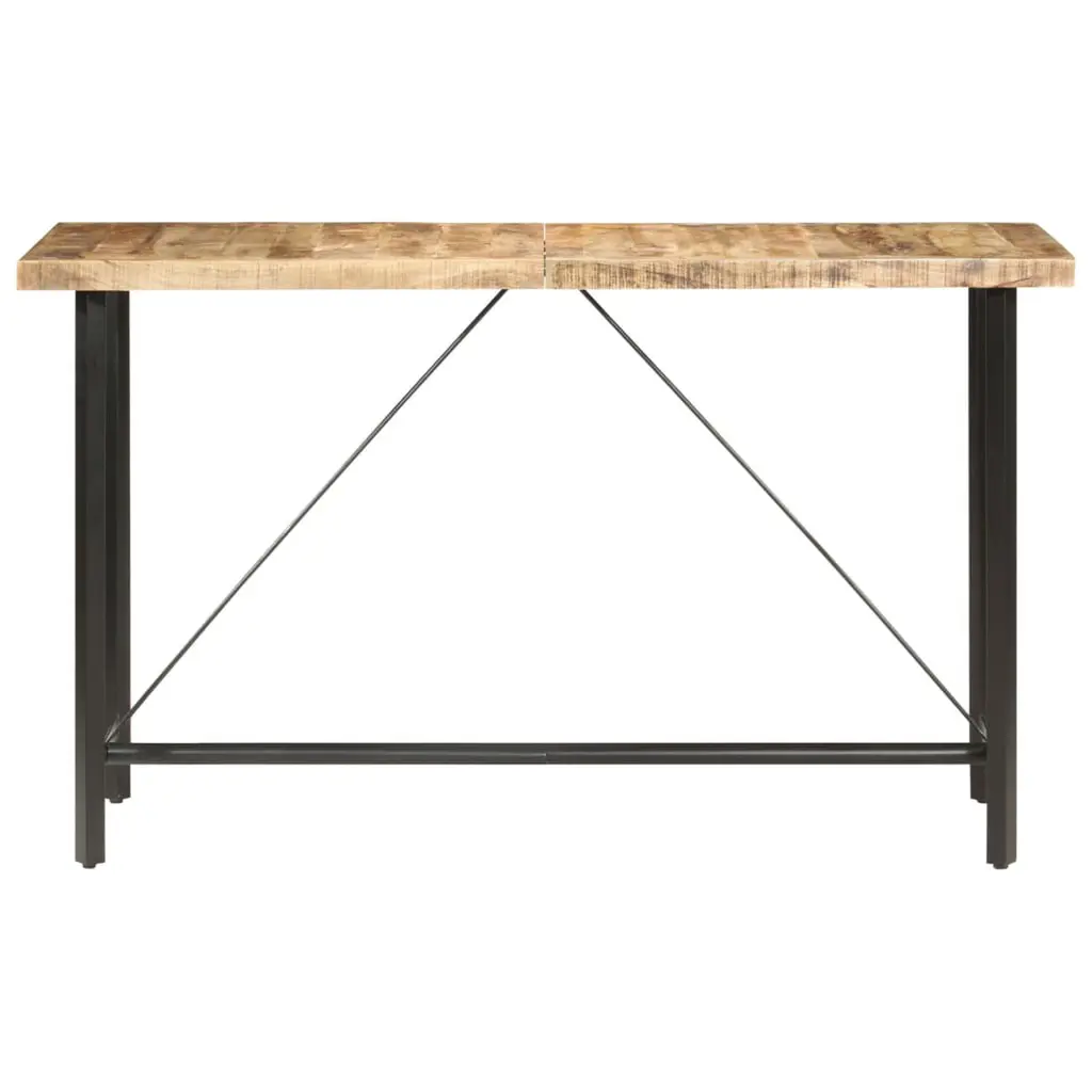 This Industrial Bar Table measures 70.9 in long, 27.6 in wide and stands 42.1 in high. It's got a rugged beauty made from solid mango wood, giving it an aesthetic that matches the modern urban lifestyle. The strong black iron legs not only enhance its striking look but also ensure stability, making it a centerpiece for dining areas or casual home bars where friends and family gather for meals and drinks. Construction: Built from solid mango wood, this bar table is tough and designed to withstand daily use, ensuring it lasts while keeping its good looks.Industrial Style: The raw mango wood texture paired with powder-coated iron legs gives this table a factory-inspired toughness, fitting perfectly with contemporary and minimalistic interiors.Generous Size: At 70.9 x 27.6 x 42.1 in, it offers plenty of room for up to 6 people, perfect for dinner parties or casual hangouts in your dining room or kitchen.Easy Maintenance: Keeping it looking great is a breeze; just give it a clean with a damp cloth and avoid harsh chemicals to preserve its natural shine.Versatile Functionality: This bar table serves many purposes, ideal for meals, drinks, or as a standout piece in your home bar, suiting various lifestyle needs.