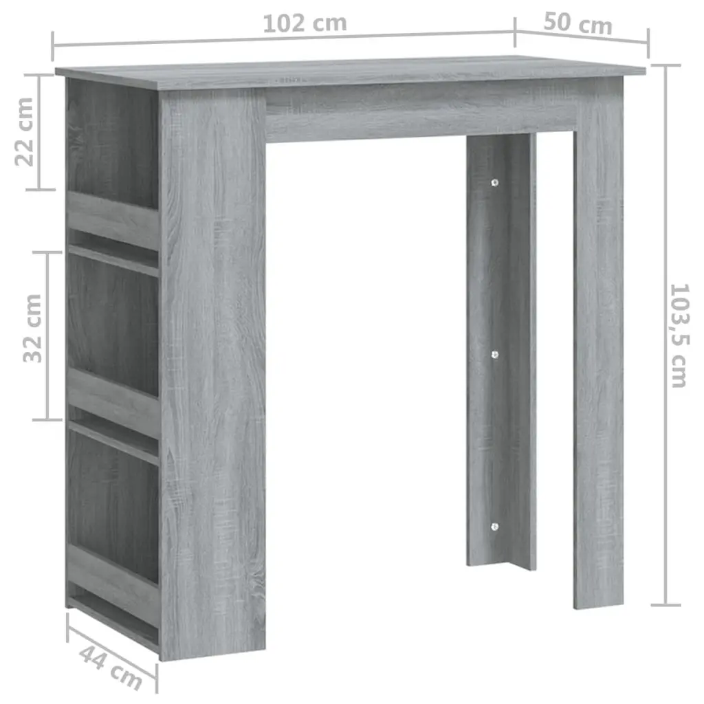 This Gray Sonoma Bar Table is a blend of style and practicality for modern living. It fits perfectly in kitchens or living rooms, bringing a sleek look to any space. With its classy color and smooth texture, it's just right for elevating your dining or social times, making your gatherings feel warm and inviting. Versatile Functionality: This bar table is perfect for various occasions, whether you’re hosting a dinner party or enjoying a morning coffee. Its height allows for easy pairing with bar stools, while also serving well for brunch settings. The modern style effortlessly integrates with different decor themes.Ample Storage: Equipped with three built-in shelves, this table offers excellent storage for kitchen essentials, drinks, or display items. These shelves provide easy access to your favorite items, encourage organization, and create an appealing presentation. Utilize this multifunctional space in your home and keep your areas tidy.Sleek Design: The gray sonoma finish brings a sophisticated aesthetic to any room. Its matte texture not only looks stylish but is also easy to maintain, making this table a practical choice for busy households. The clean lines and modern appeal introduce a touch of elegance to your environment.Sturdy Construction: Crafted from engineered wood, this table is built to withstand the test of time. The solid construction guarantees stability, making it reliable for everyday use. Enjoy peace of mind knowing your table is designed to endure a dynamic lifestyle.Size: Measuring 40.2 in long, 19.7 in wide, and 40.7 in high, it comfortably accommodates up to four people. The dimensions make it ideal for various spaces, fitting beautifully in kitchens, dining rooms, or home bars, enhancing functionality without overwhelming the area.