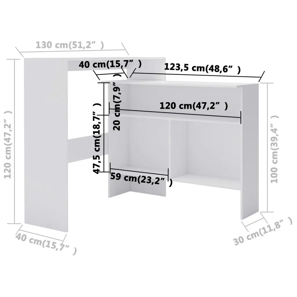 Vidaxl Bar Table White Engineered Wood 51.2x15.7x47.2 In Expandable