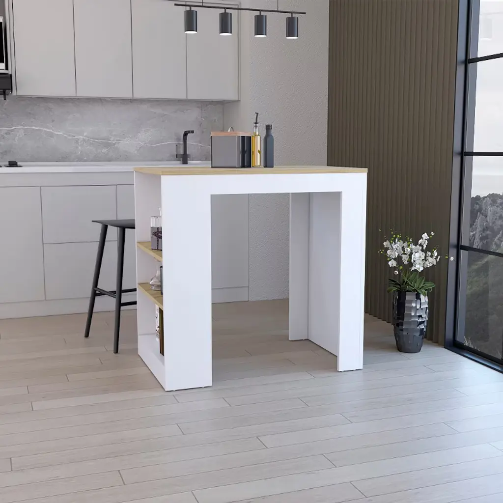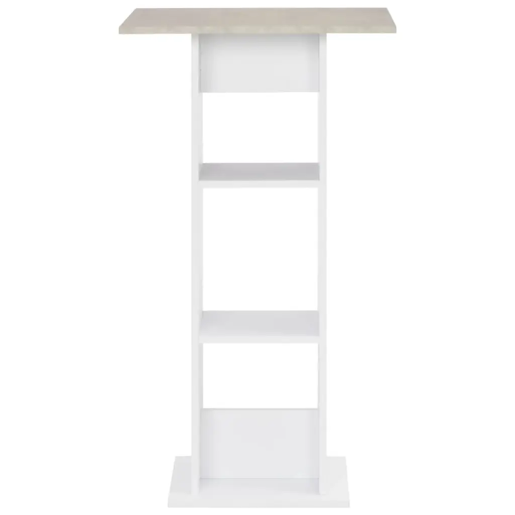 This Sleek White and Concrete Bar Table is designed to elevate your dining experience with its modern and sophisticated style, effectively combining aesthetic beauty with practicality. Perfect for both casual gatherings and formal dinners, this bar table will become the focal point of any room, whether in your kitchen, living room, or designated dining area, complementing modern interior decor with its minimalist profile and stylish materials. Modern Aesthetic: The sleek design features a white finish complemented by a concrete top, ensuring it fits in with any contemporary decor. It’s not just a table; it’s a showstopper that enhances your space.Ample Storage: With two built-in shelves, this table offers generous storage for your dining essentials or decorative items, blending organization with style.Durability: Made from engineered wood and concrete, this table is both solid and resilient, built to last even with everyday use while keeping its sleek look.Practical Dimensions: At 23.6 inches wide and long, and 43.3 inches high, it’s perfectly suited for bar stools, creating a welcoming atmosphere for gatherings.Versatile Usage: Suitable for all sorts of settings, from home dining to pubs, this bar table is a functional yet stylish choice for any occasion.