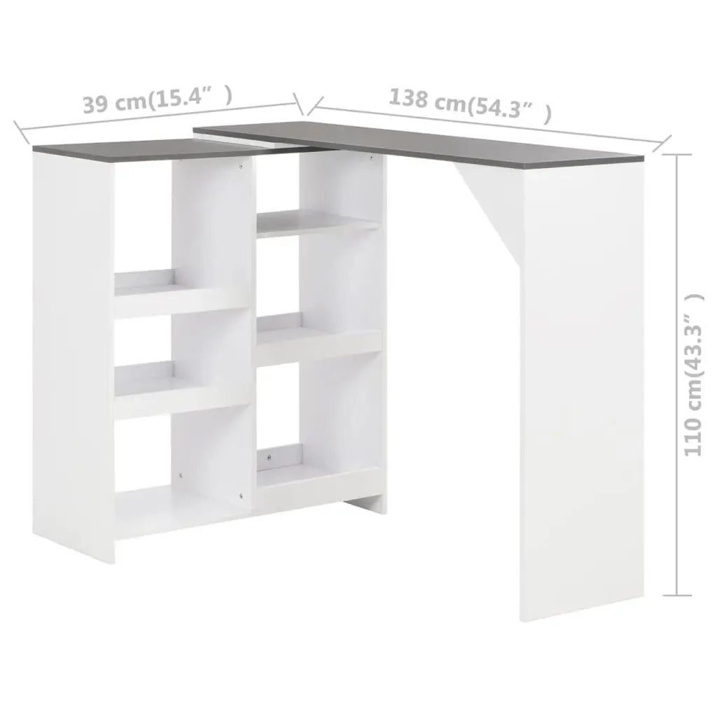 This modern bar table brings style and functionality together, making it a great pick for any kitchen or dining space. Built from top-notch engineered wood and featuring a trendy white and grey look, this table not only provides loads of room for dining and socializing but also adds to a sleek vibe that suits various interior styles. Ample Storage: The built-in shelf makes it easy to keep things like cocktail glasses and snacks tidy, enhancing your at-home bar experience. This handy feature’s great for both family get-togethers and entertaining guests. Adjustable Armrests: Even though it’s mainly a bar table, the adjustable armrests ensure everyone’s comfy while seated, making it adaptable to different needs. You can create a seating arrangement that suits various body types. Sleek Design: The smooth matte finish on this bar table looks sophisticated and is easy to clean, keeping it a stylish element in your dining area. The white and grey color scheme fits right in with both modern and classic decor styles. Durable Material: Made from engineered wood, this table is strong and stable, providing a solid surface for dining and entertaining. You'll love how this sturdy build handles daily use without losing any style. Compact Size: At 54.3 in long and 15.4 in wide, this table fits neatly in smaller spaces while providing enough surface area for meals or drinks, making it perfect for city living or smaller kitchens. Its height of 43.3 in is spot on for gathering around for meals or drinks.