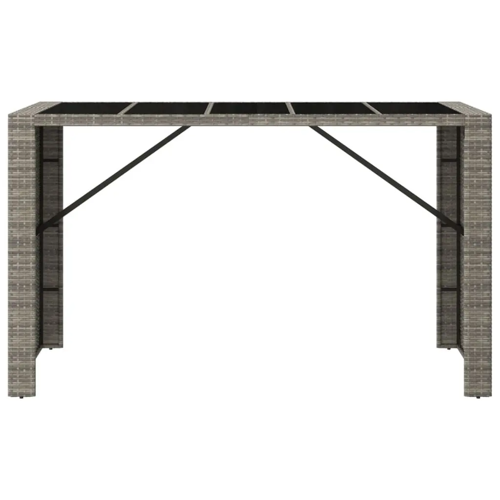 This sleek bar table embodies a modern aesthetic that suits a range of outdoor spots like gardens and patios. With a fab grey powder-coated steel frame and a lovely tempered glass top, this tall bar table mixes elegance with practicality, making it a great choice for hosting gatherings or simply enjoying an afternoon outside. Stylish and Functional: This elegantly designed grey bar table is a sophisticated spot for drinks, whether for garden parties or casual breakfasts outside. The mix of materials boosts not just its looks but also makes it a standout piece in any outdoor dining setup. Robust Construction: Made with tough poly rattan and strong steel, this table holds up to the elements while keeping its stylish look. You can enjoy your outdoor area without worrying about damage, ensuring it's durable and ready for use. Ample Space: At 72.8 in long and 31.5 in wide, it provides plenty of surface area for entertaining. Serve up snacks, drinks, or brunch with ease and style. Easy Maintenance: The tempered glass top makes cleaning a breeze; just wipe it down to keep it sparkling. This hassle-free care lets you spend more time enjoying your outdoor space. Outdoor Versatility: Great for all sorts of occasions, from relaxed garden brunches to big celebrations with friends. It adapts to whatever entertaining needs you have and enhances the outdoor experience for you and your guests.