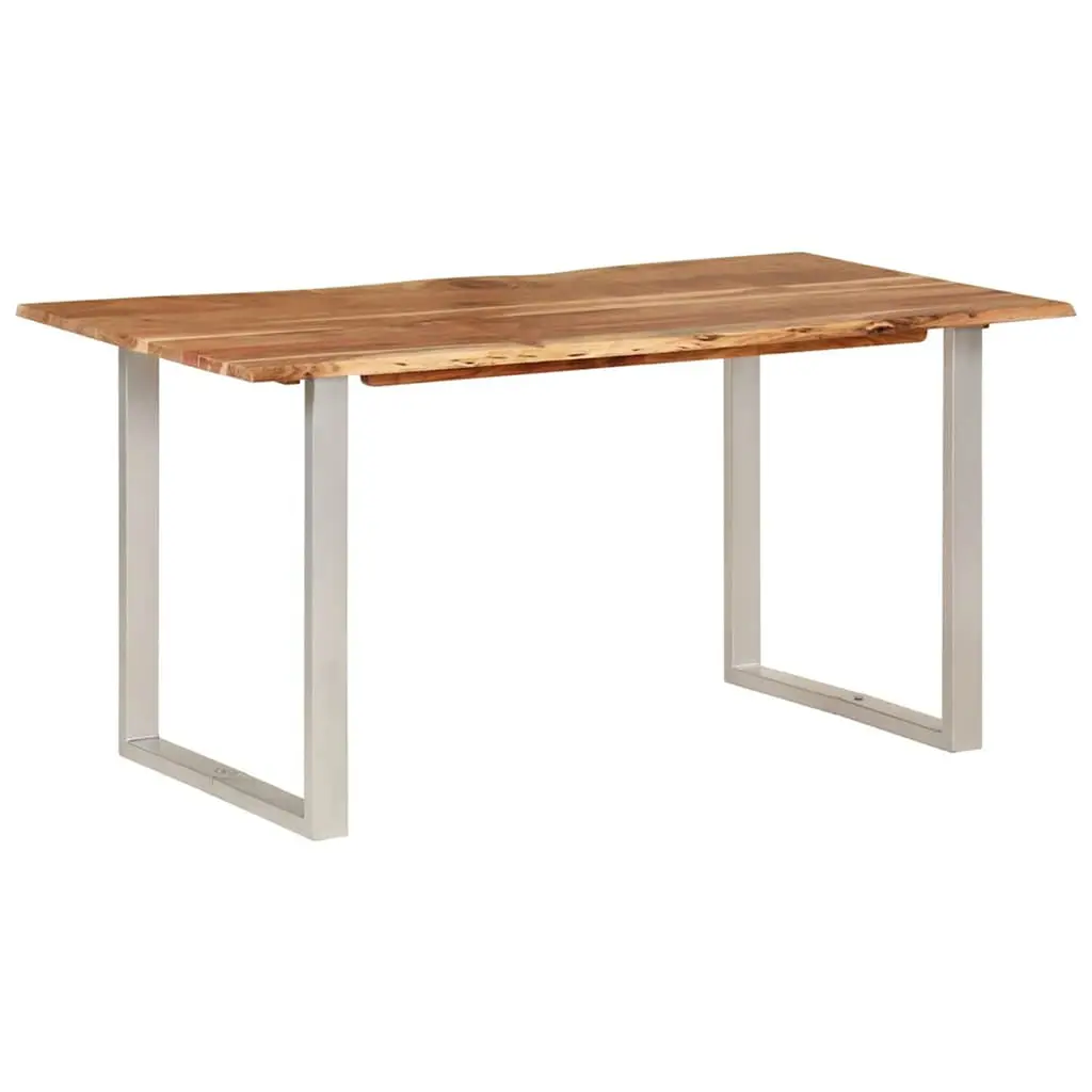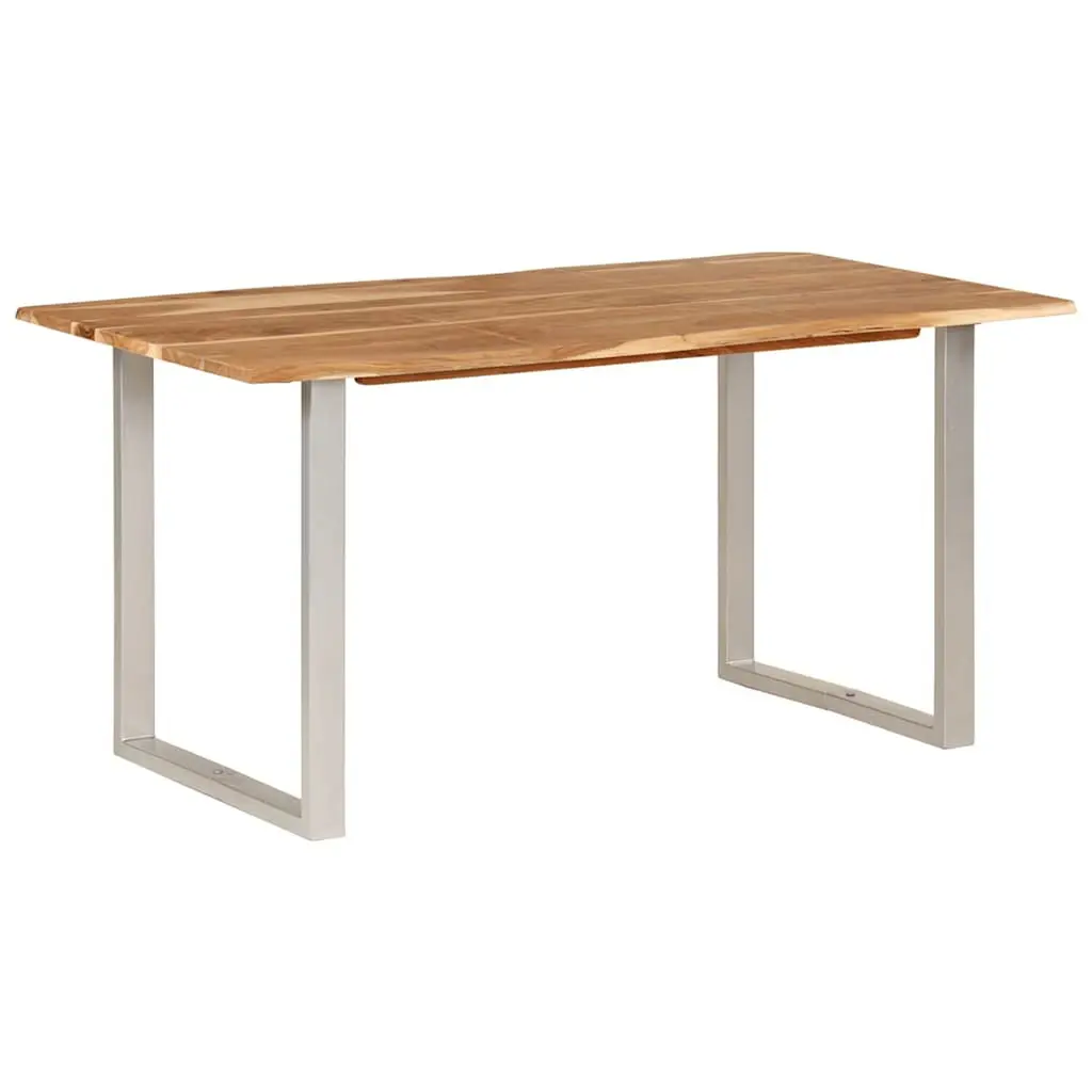 Vidaxl Dining Table Acacia Wood Grain And Silver Legs