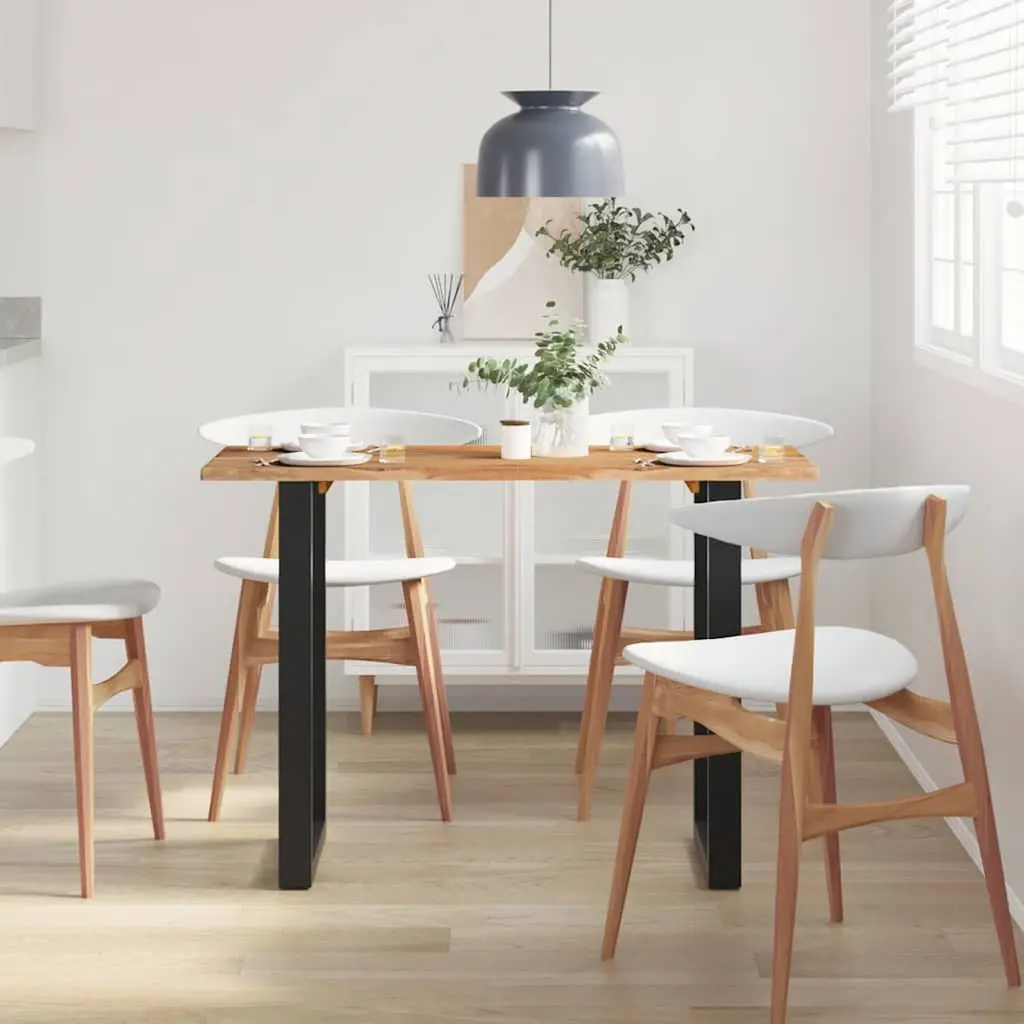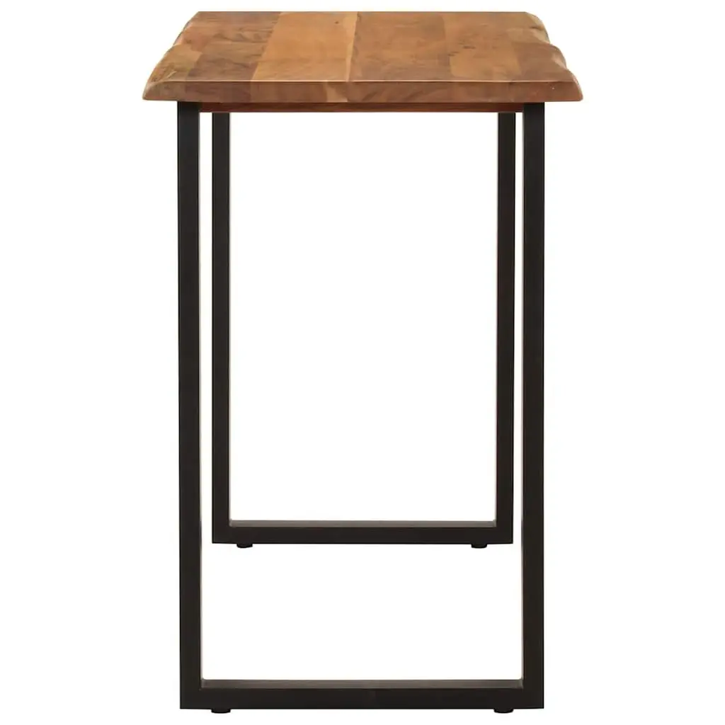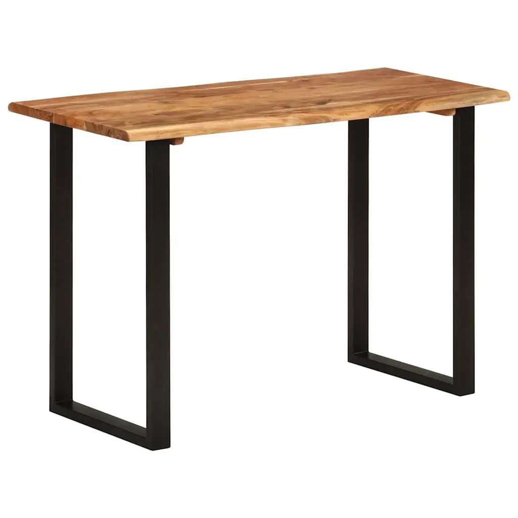 This Rectangular Dining Table in natural acacia wood and black iron is a lovely mix of rustic charm and modern style, perfect for everyday meals or special occasions. It's sturdy and inviting, making it fit right in any interior, providing both functionality and good looks in a dining room or kitchen. Industrial Design: The strong iron legs and smooth acacia surface create an industrial vibe that fits any decor—definitely a conversation starter!Durable Material: Crafted from solid acacia wood, this table promises to last, with the natural finish bringing warmth to any gathering.Spacious Surface: With dimensions of 43.3 in by 19.7 in, it’s perfect for up to 4 people—great for dinner with family or friends.Unique Finish: Each table's wood grain is different, giving a unique touch to your dining area.Easy Maintenance: Keeping this dining table in top shape is simple—just wipe it down with a damp cloth and avoid harsh cleaners.