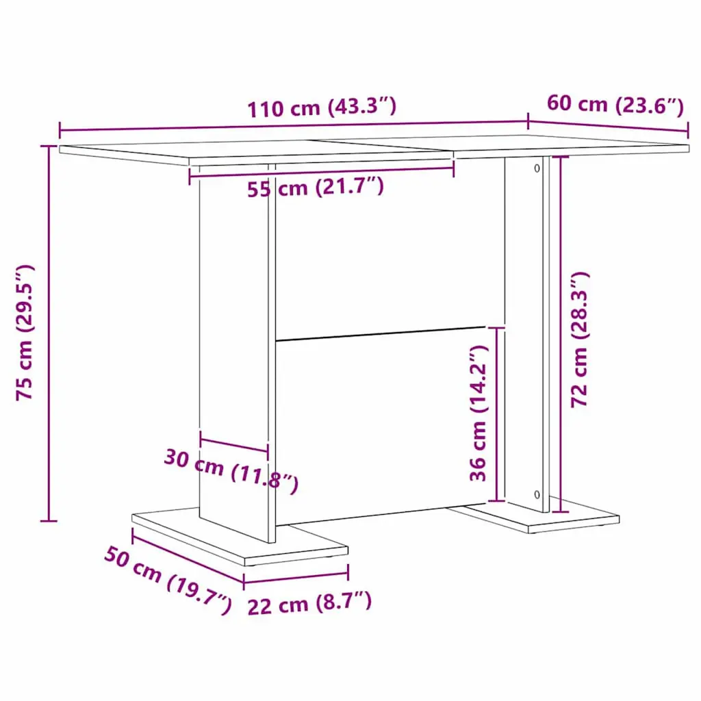 Vidaxl Dining Table Artisan Oak 43.3" X 23.6" X 29.5" Engineered Wood