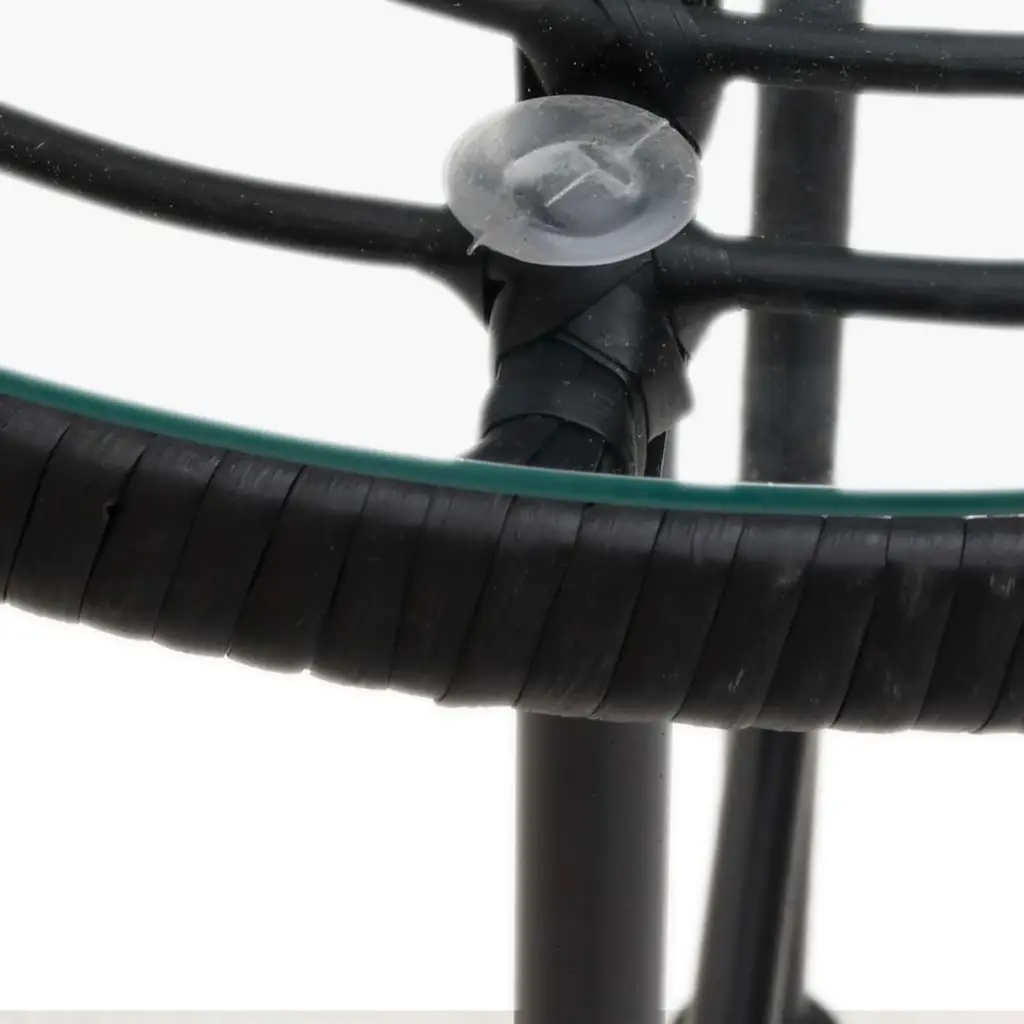 This round bistro dining table gives contemporary dining a fresh twist. With its striking tempered glass top, it offers both style and functionality, perfect for intimate dinners or casual hangouts outside. Stylish Design: The bold black round shape exudes elegance, making it an ideal fit for all kinds of decor.Durable Build: Made from strong metal and tempered glass, this table holds up well to everyday use while looking great.UV-resistant: This feature boosts its outdoor longevity, protecting it from fading and damage due to sunlight.Multi-functional Use: Whether for outdoor dining or as a chic accent indoors, it seamlessly fits into your lifestyle.Compact Size: At 21.7 in in diameter, it’s space-saving and perfect for small areas, maintaining a cozy atmosphere.
