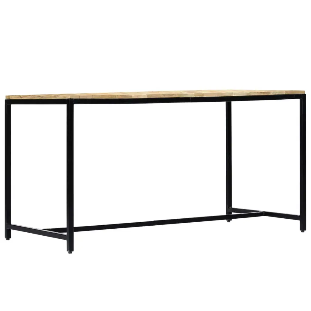 This dining table has a fab mix of solid mango wood and sturdy powder-coated iron, perfect for fans of industrial style. The rich brown top and sleek black legs not only look great but are really durable too, making it the perfect standout feature for your dining room or kitchen. Its unique wood grain adds character, making every meal feel special. Spacious 55.1 in x 27.6 in surface perfect for family meals and entertaining guests. Crafted from solid mango wood which ensures longevity and reliability. The powder-coated finish on the metal frame prevents rust and enhances durability. This table supports up to six diners, making it ideal for gatherings. Its smooth texture and polished look elevate the beauty of any dining space.