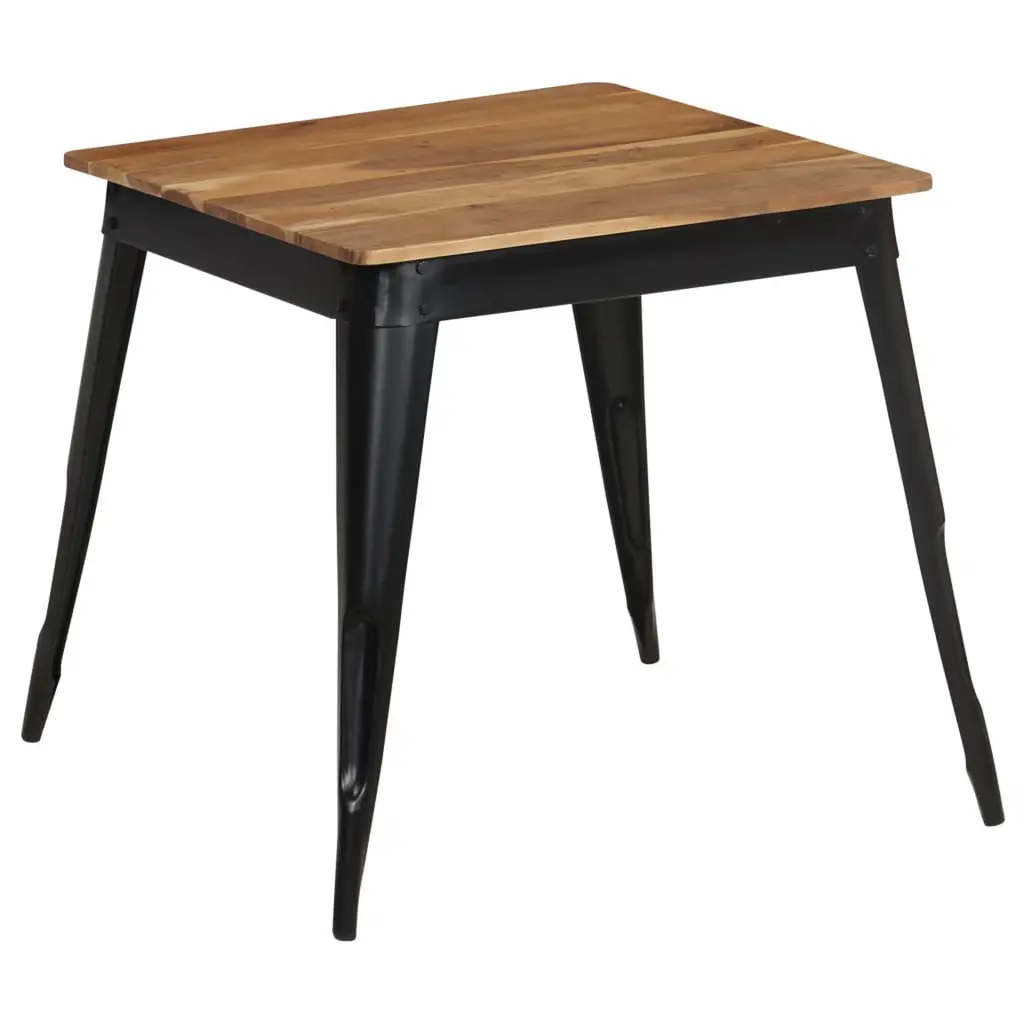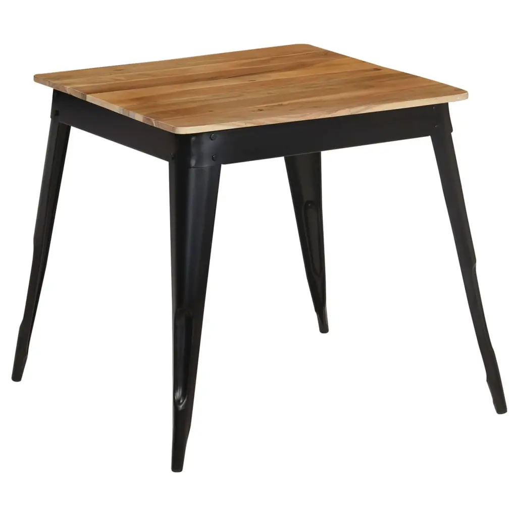 This Rustic Industrial Dining Table perfectly combines natural elegance with modern durability, ready to step up your dining experience. Its solid acacia wood top gives off a warm vibe, making it a fantastic centerpiece for everything from cozy meals to casual get-togethers. Solid Acacia Wood: This table sports a top made of high-quality acacia wood, famous for its rich color and unique grain, ensuring each piece is one of a kind. The natural finish enhances your home’s beauty while giving a tough surface for daily use.Sturdy Steel Frame: Built on a solid steel frame, this table promises top-notch stability and longevity, perfect for any spot. The painted black legs add modern contrast and enhance the table's industrial vibe.Versatile Style: Whether in a dining room or for work, the rustic industrial design fits in with various décor styles, making it a handy addition to your home. It can do double duty in both dining and working spaces.Compact yet Spacious: At 29.5 in by 29.5 in and with a height of 29.9 in, this medium-sized table comfortably seats four, making it great for smaller areas without losing out on style or function.Easy Maintenance: The lacquer finish makes cleaning easy, keeping it looking great while protecting against wear and moisture. Just a bit of care will keep this table as a standout piece in your home for ages.