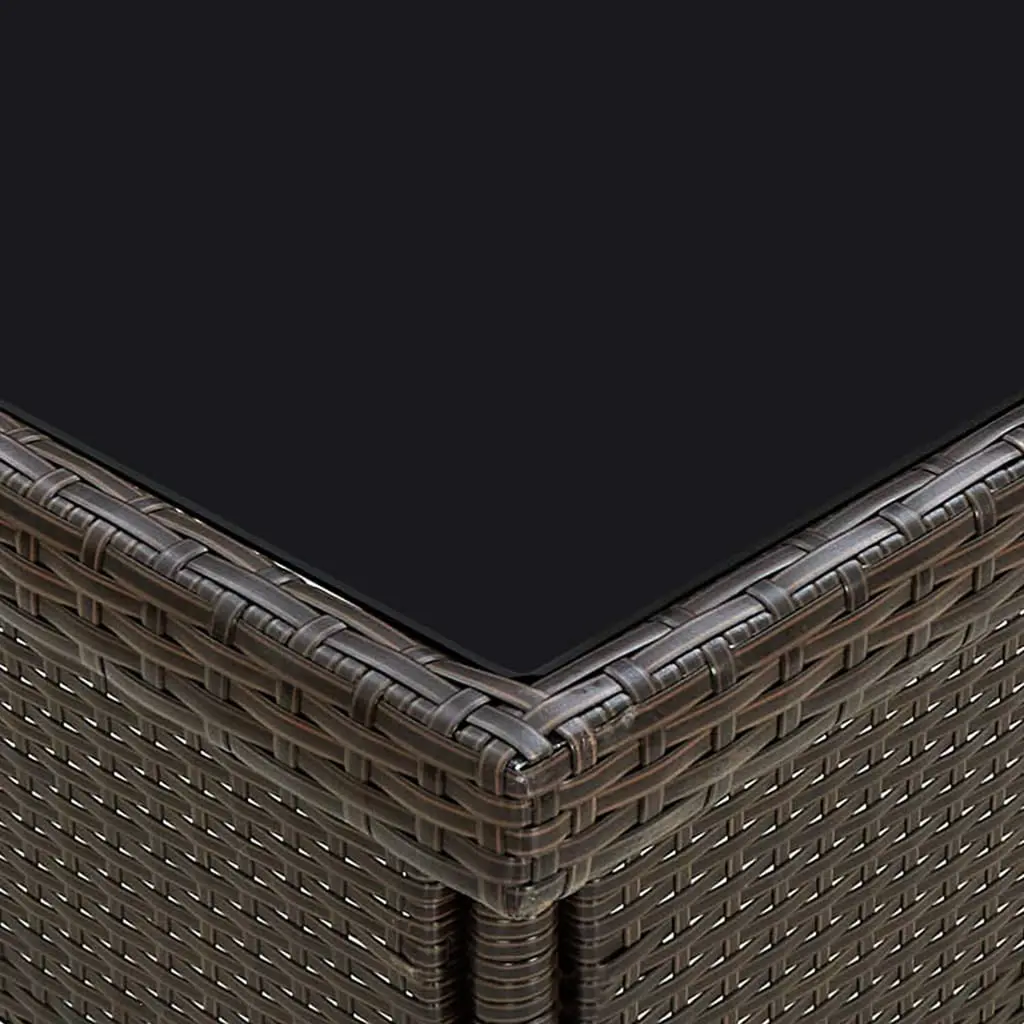 This Brown Poly Rattan Outdoor Dining Table is a stylish fit for outdoor spaces, built for both function and flair. Its flexible design makes it perfect for cozy gatherings on balconies or terraces, bringing a touch of elegance to your outside dining. Weather-Resistant Build: Crafted from durable poly rattan, this outdoor dining table is ready to handle all sorts of weather. Its sturdy design ensures it lasts and stands up to outdoor conditions.Chic Glass Surface: The clear tempered glass top adds a touch of class while being easy to keep clean. Enjoy a smooth surface that showcases the beauty of your garden or balcony.Generous Seating: Designed to fit up to four people comfortably, it’s ideal for intimate dinners or casual hangouts with friends and family. Share meals in a cozy spot.Lightweight for Easy Moving: Its light frame makes it easy to shift around, letting you rearrange your space as needed. Great for spontaneous gatherings!Low Maintenance: The wipe-clean surface helps keep dirt at bay, with simple care needing no harsh chemicals—just a quick wipe down keeps it looking fab.