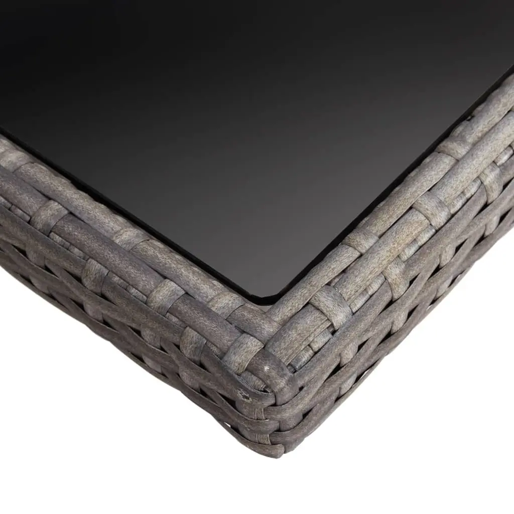 This Gray Rattan Outdoor Dining Table is a stylish and sophisticated addition to your garden or patio, mixing well with different decor styles. Its sleek design features a clear tempered glass surface that nicely contrasts with the sturdy gray metal frame, perfect for both relaxed get-togethers and fancy summer dinners. Weather Resistant: Made from UV-resistant poly rattan, this table lasts through all sorts of weather while keeping its stylish look. Spacious Design: With dimensions of 47.2 in by 47.2 in, it comfortably fits up to four people, making it perfect for family meals or hosting friends. Sleek Aesthetic: Its modern style, with smooth lines and minimalistic design, enhances the visual charm of any balcony, garden, or patio. Easy Maintenance: Just wipe down the surface with a damp cloth, and the powder-coated steel frame fights rust and wear for ease of care. Versatile Usage: Ideal for outdoor dining, this table becomes a social hub, a must-have for any warm-weather gathering.