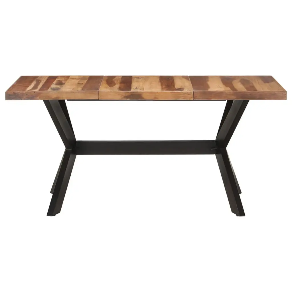 This industrial-style dining table combines good looks with practical functionality, perfect for sprucing up any dining area. Made from solid acacia and rubber wood, it sports a lovely honey finish that pairs nicely with its bold powder-coated steel frame, giving you a classy yet durable dining experience, suited for everything from modern apartments to relaxed dining spaces. Robust Construction: This table's built strong from solid acacia wood with stylish powder-coated steel legs, promising resilience and durability in your home.Spacious Dimensions: Generously sized at 63.0 x 31.5 in, this table fits up to six diners comfortably, perfect for family meals or hangouts with friends.Versatile Aesthetic: Its industrial style, highlighted by a lacquered finish and smooth texture, easily fits into various decorating styles, enhancing any dining room or kitchen.Care Instructions: Keep it looking great by dusting with a soft cloth and using coasters to guard against spills. A little simple care keeps your table looking fab and functional over time.Easy Assembly: It’s designed for practicality and needs minimal tools for setup, so you can enjoy your new dining table in no time.