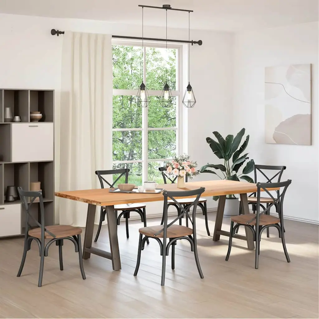 These dining table legs combine form and function. It's an ideal choice for customising your dining table.Durable material: This dining table leg is made of powder-coated steel, making it sturdy and long-lasting.Sturdy structure: The dining table leg’s A-shaped design ensures it can support a heavy tabletop.Practical design: This dining table leg includes adjustable foot levelers, ensuring stability even on uneven floors and minimising floor scratches. Additionally, the bracket features pre-drilled holes and delivery-included screws, which can be used for fixing the leg to the tabletop (not included), making it easy to assemble.Modern aesthetics: The table leg has clean lines and a geometric design to improve the furniture's overall look. And it goes well with any tabletop of a suitable size.Good to know:The delivery only contains table legs, the tabletop is not included.