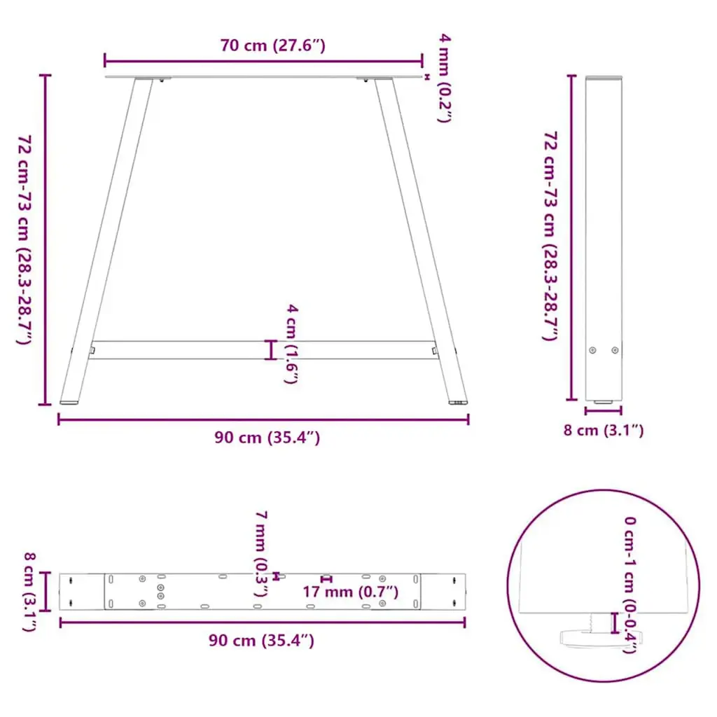 Vidaxl Dining Table Legs A-Shaped 2 Pcs 35.4x(28.3-28.7)" Steel