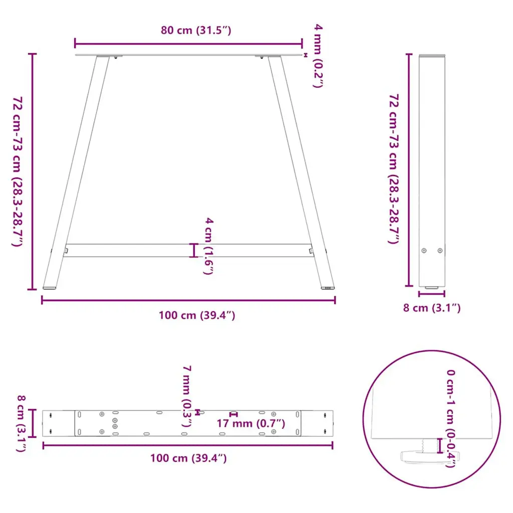 Vidaxl Dining Table Legs A-Shaped 2 Pcs 39.4x(28.3-28.7)" Steel