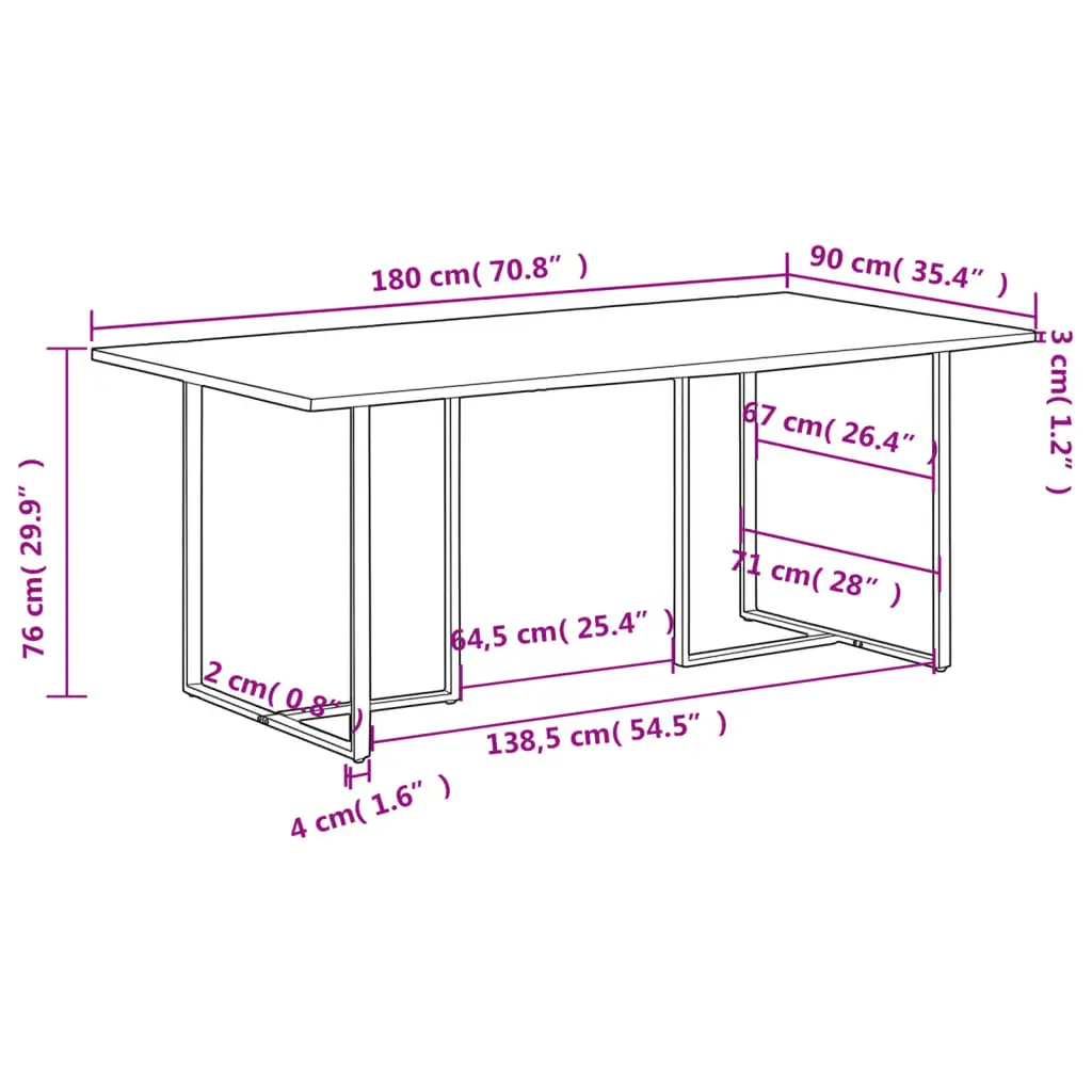 This large rectangular dining table boasts a stunning multicolor finish that pairs a smooth reclaimed wood surface with a tough powder-coated iron frame, making it a fab centerpiece for any dining space. Perfect for intimate family meals or larger gatherings, this stylish table fits into any occasion, giving you both function and a modern flair that spruces up your home. Stunning Aesthetic: The unique blend of colors and textures not only adds visual appeal but also creates a warm, welcoming atmosphere, enhancing your dining experience.Robust Construction: Crafted from solid reclaimed wood and powder-coated steel, this dining table is built to handle everyday use while keeping its good looks over time.Versatile Use: This dining table fits in various places, whether it's a dining room, kitchen, or living room, meaning it's a great addition to your furniture collection.Ample Seating: With a significant surface area of 70.9 in long and seating for up to 8 people, this table is perfect for family gatherings, big dinner parties, and celebrations.Natural Variation: Each table features distinct wood grain patterns, so every piece is one of a kind, adding to its charm and character.