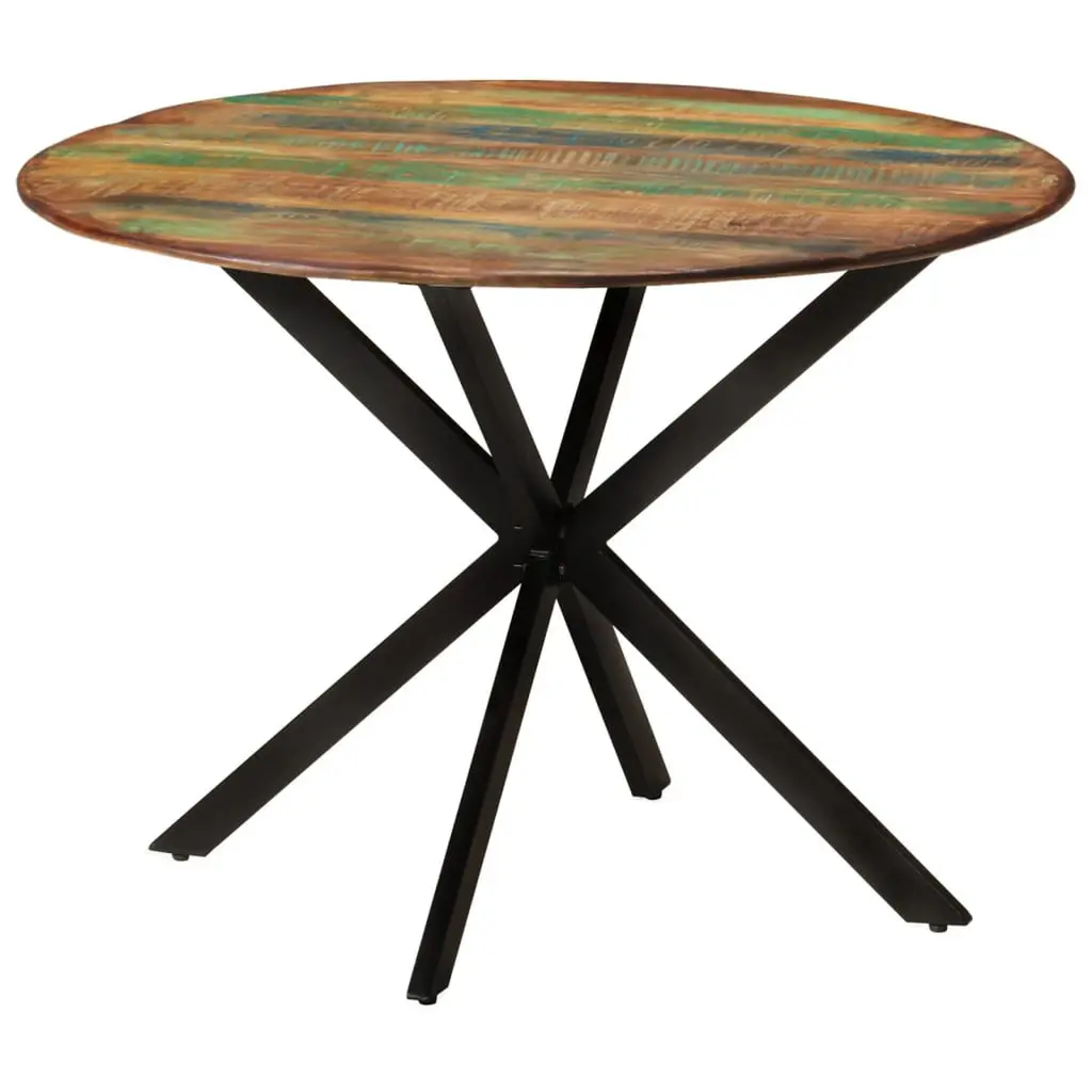 This Round Dining Table is designed with a gorgeous reclaimed wood surface, giving it a rustic charm that fits right in with both modern and traditional interiors. Its solid build and industrial design elements make it a perfect dining piece for family and friends to get together around, enhancing your meals with its unique vibe. Crafted from solid reclaimed wood: Each table shows off its distinct grain and color, ensuring no two tables are alike and adding a unique flair to your dining area.Industrial design: The mix of reclaimed wood and powder-coated steel makes a striking visual pairing that fits various interior styles, from trendy lofts to cozy kitchens.Perfect for daily use: This table easily seats up to four people, making it great for intimate dinners, board game nights, and family gatherings.Compact size: With a diameter of 43.3 in, this table is great for smaller dining rooms or kitchens, creating a cozy dining vibe without hogging space.Easy to clean: The painted finish means you can keep it looking good without much hassle, making meals easy-peasy.