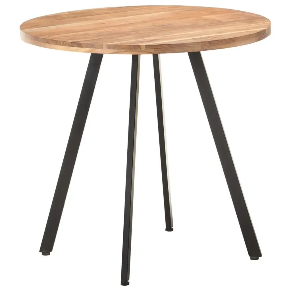 This Round Solid Acacia Dining Table is a gorgeous addition to your dining space, adding warmth and a touch of class to any interior. Made from solid acacia wood, it has a beautifully smooth surface and sturdy iron legs that provide reliability while boosting the overall look with an industrial charm. It's perfect for casual family dinners or formal entertaining, serving as the centerpiece of any kitchen or dining room, creating a welcoming atmosphere that encourages conversation and togetherness. Stalwart Construction: The table’s solid acacia wood ensures durability and resilience, making it a reliable choice for everyday use while adding natural beauty to your home.Industrial Elegance: The blend of natural wood with powder-coated iron legs gives it an industrial look, perfect for modern and contemporary decor.Unique Personality: As a natural product, the table features different wood grains and textures, making each table one-of-a-kind for a personal touch in your dining space.Spacious Surface: With a large round surface, this table can accommodate gatherings comfortably, ideal for family meals or casual hangouts.Easy Maintenance: Practical by design, just wipe the surface with a damp cloth to keep it looking great without harsh chemicals.