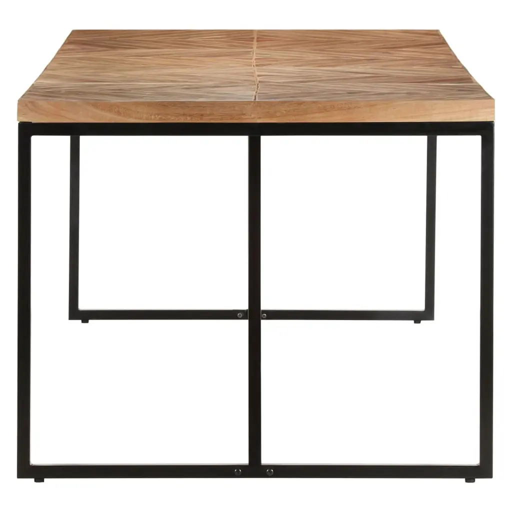 This industrial dining table combines natural beauty with modern design, making it a great fit for any dining space. It's made with solid acacia and mango wood, and a strong powder-coated steel frame, showcasing a stunning chevron pattern that really adds to its visual appeal, making it a centerpiece for meals and gatherings. Unique Chevron Design: The table's striking chevron pattern adds character and style, making every meal feel special. This standout design turns a basic dining setting into something chic and lovely.Ample Room for Gatherings: At 78.7 in long and 35.4 in wide, this table provides generous seating for 8 guests. Whether it's a family meal or a festive gathering, there's enough room for everyone to enjoy themselves.Quality Materials: Crafted from solid acacia and mango wood, this table not only boasts durability but also showcases the natural beauty of wood grains, giving each table its unique charm. Built to last, it can handle everyday use without losing its elegant look.Sturdy Steel Frame: The solid steel frame with a powder-coated finish adds to the table's robustness, ensuring stability and longevity. It pairs beautifully with the wood, creating a lovely balance of strength and style for any dining room or kitchen.Easy Maintenance: The powder-coated surface is designed for easy cleaning, making everyday maintenance a breeze without sacrificing good looks. Simple care tips ensure your table stays looking fab for years to come.