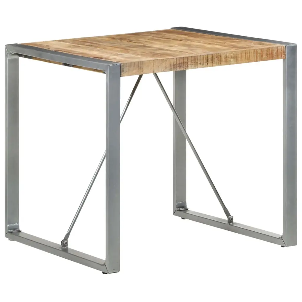 This dining table showcases an industrial vibe, combining rugged charm with functionality. Its solid construction, featuring a rough mango wood surface and sturdy powder-coated steel legs, makes it a striking addition to any dining area or kitchen setup. Rugged Yet Stylish: The table features a rough mango wood surface that adds an organic touch to your space, inviting warmth and character.Robust Frame: The furniture stands on a solid frame made from powder-coated steel, making sure it can handle daily use while looking good.Spacious Design: With a big 31.5 x 31.5 in tabletop, this dining table comfortably seats up to 4 people, perfect for small gatherings.Easy Maintenance: The table’s finish allows for quick cleaning; just wipe it down with a dry cloth to keep it looking nice over time.Indoor Use: Specifically designed for indoor use, it enhances dining rooms and kitchens with its industrial style.